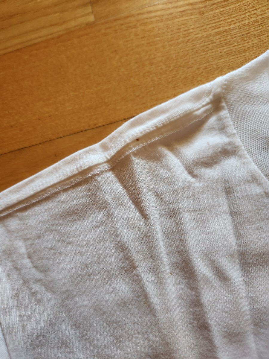 ※ぱっと見は分かりませんが右肩付近 0.5mmほどのよごれ2ヶ所、左衿後ろリブの部分に針穴ほどの穴が見られます。