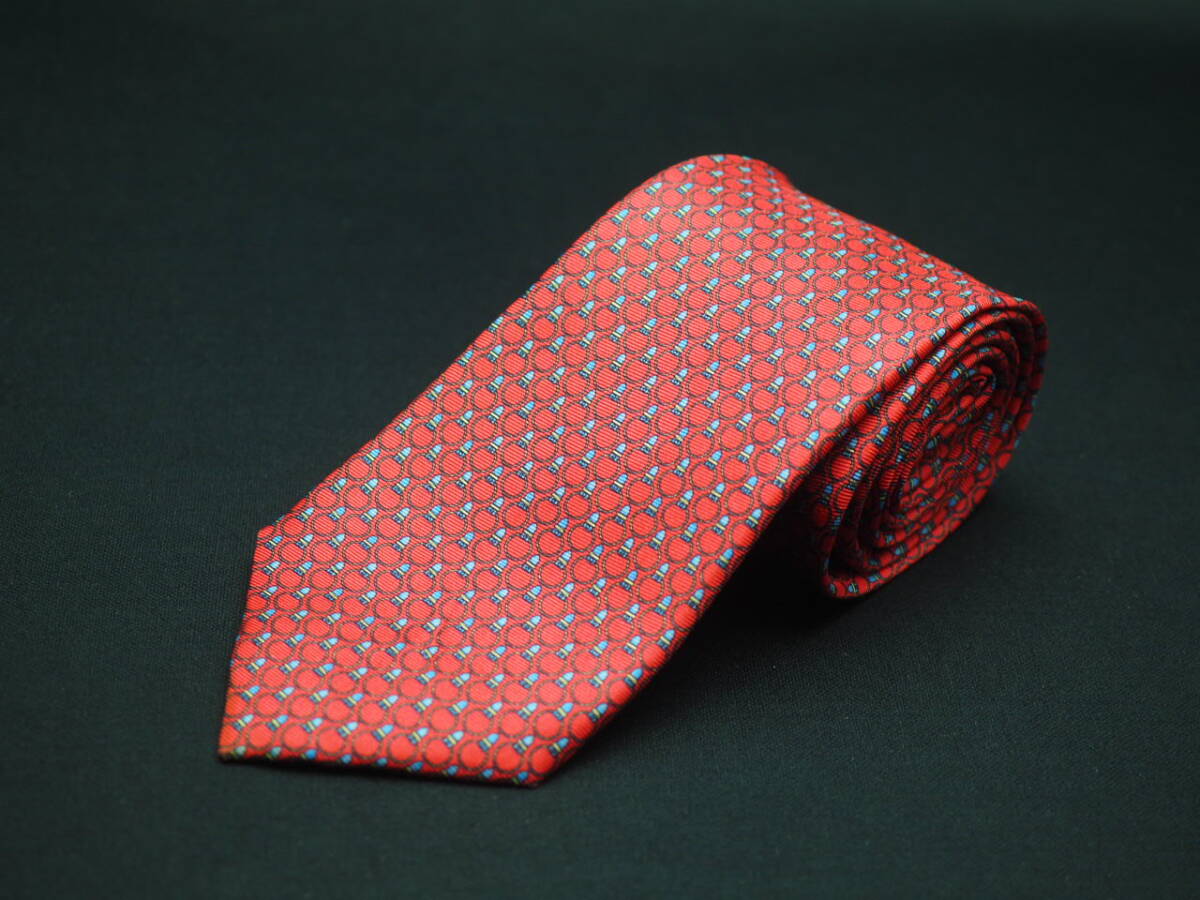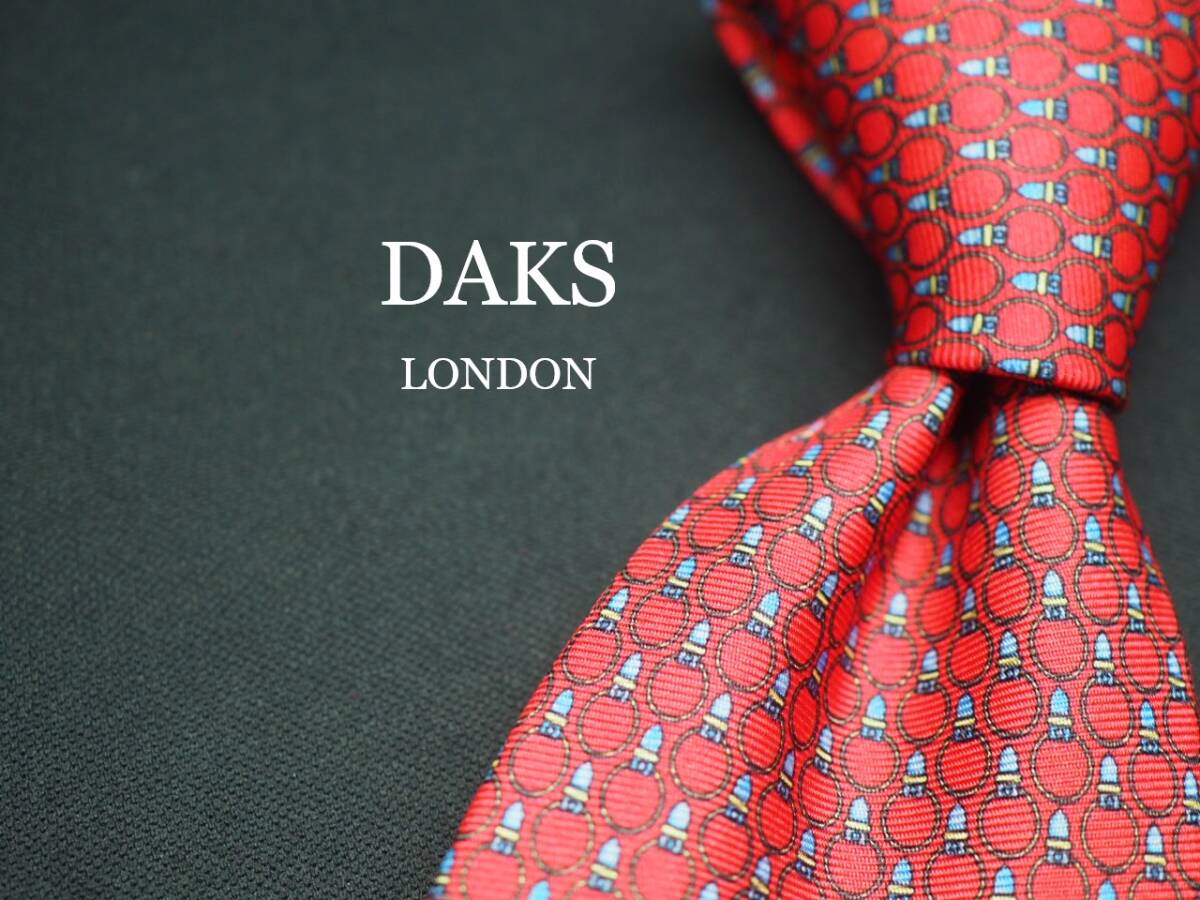 美品【DAKS ダックス】 F1523 赤系 SILK ブランド ネクタイ 古着 良品