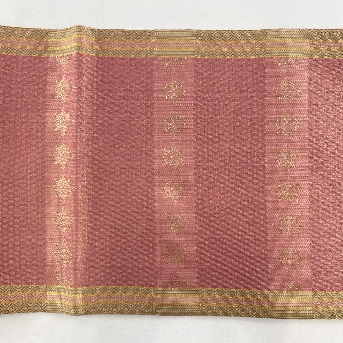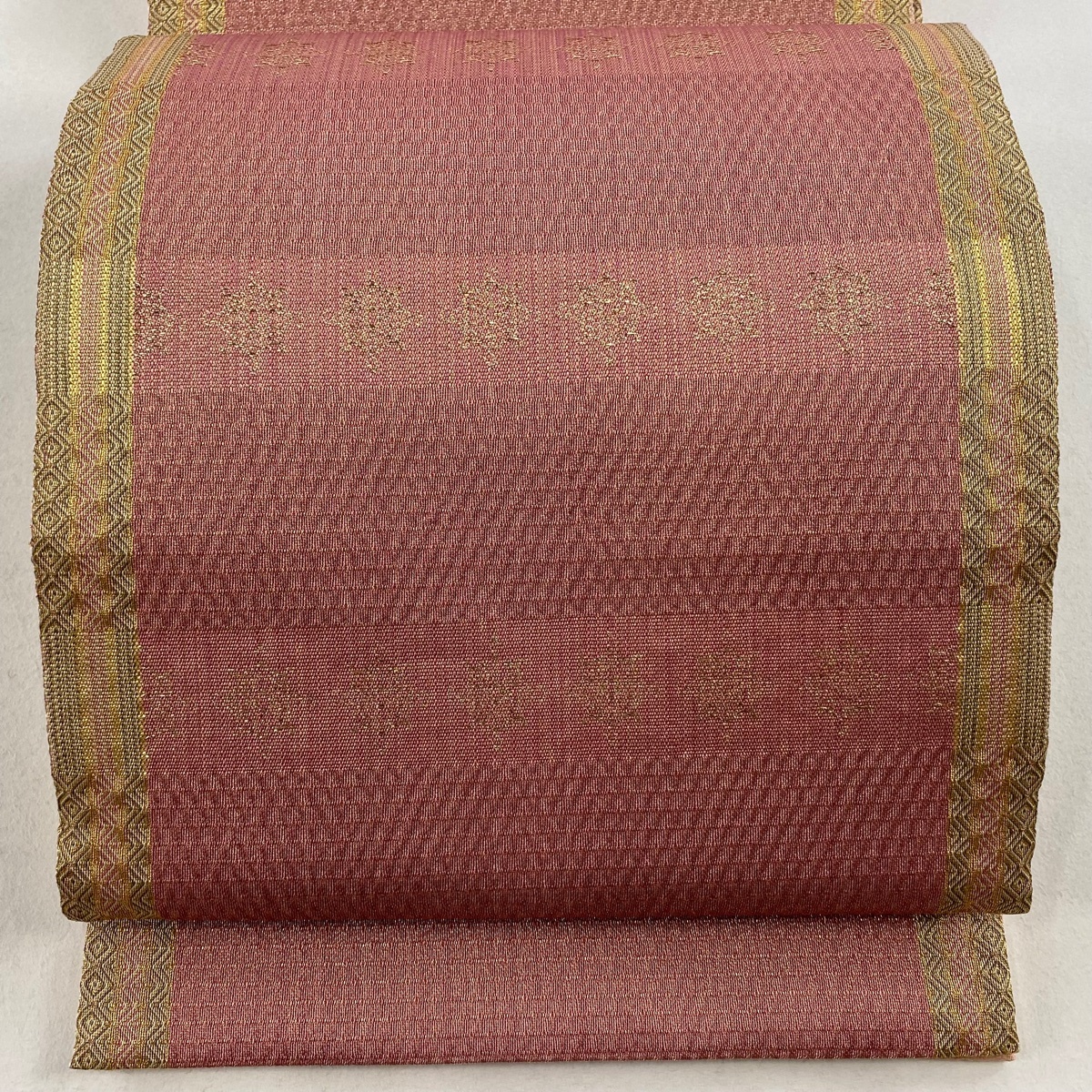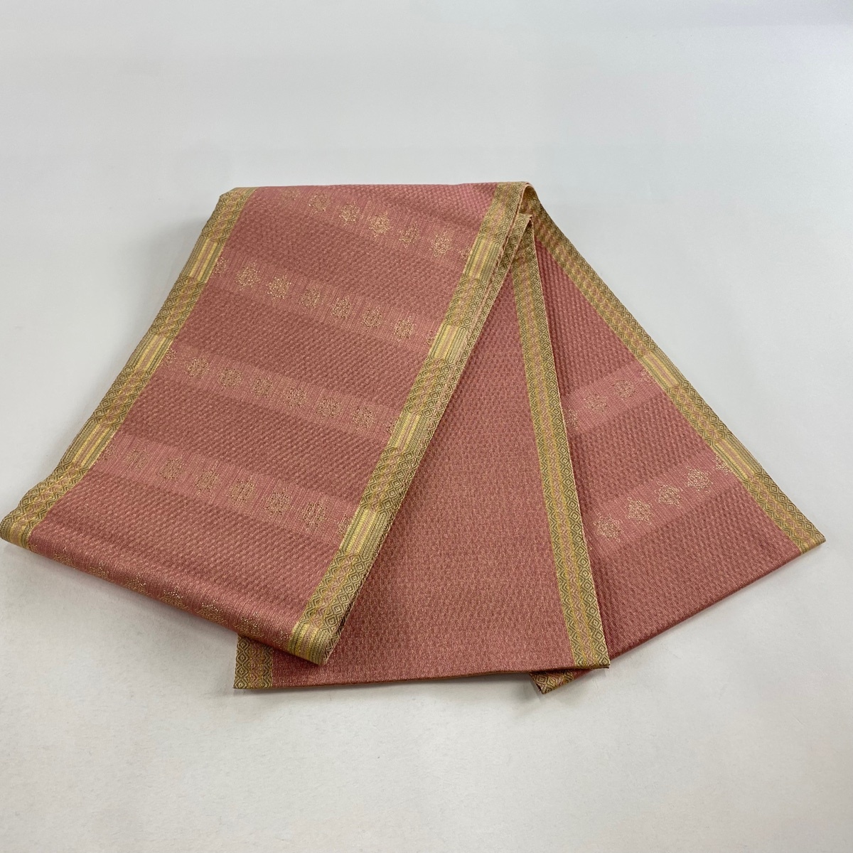 | 袋帯 美品 秀品 幾何学模様 金糸 箔 ピンク お太鼓柄 正絹 【中古】 |