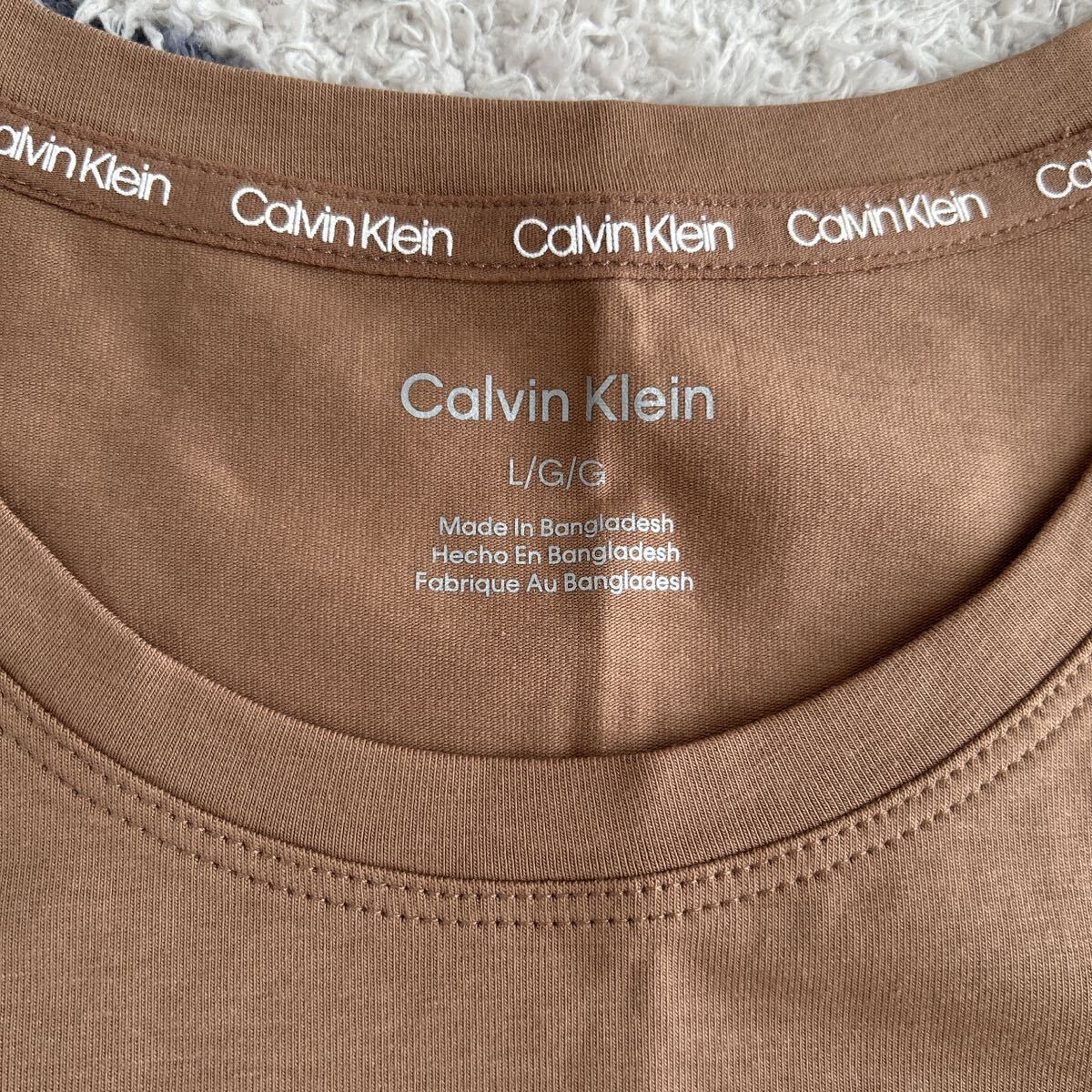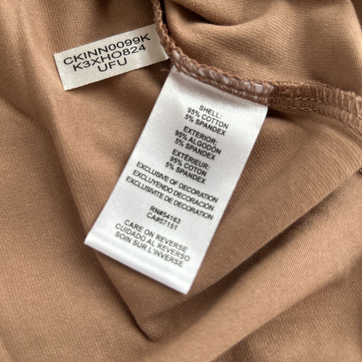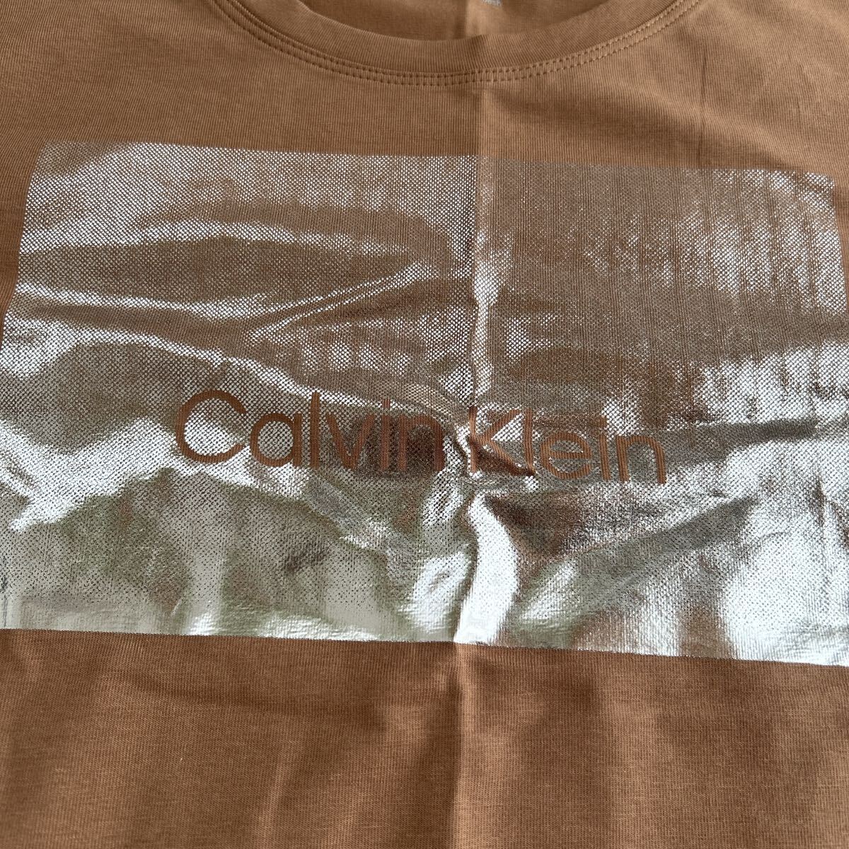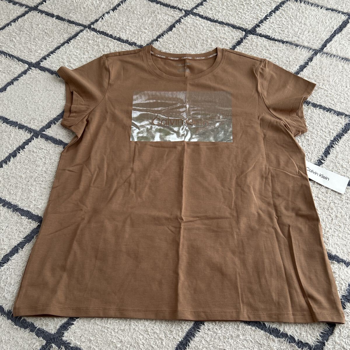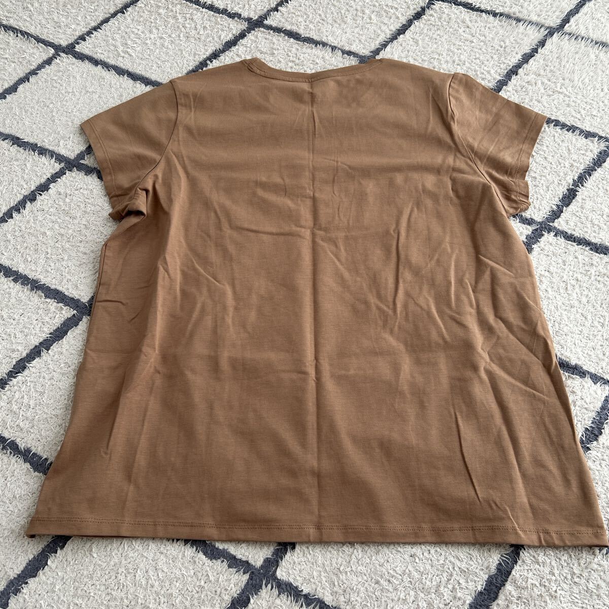 メタリックプリントのブラウンTシャツ、Lサイズ。