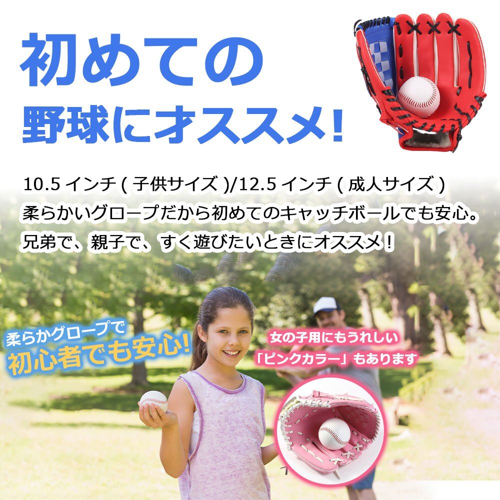 【90%OFF】野球 グローブ 軟式 練習 軟式 右投げ 練習用 初心者向け 親子用 柔らかな人工皮革 衝撃吸収パッド キャッチボールセット 10.5