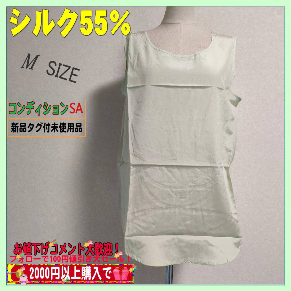 新品タグ付未使用 シルク55%レディースベスト(表記Mサイズ)うす緑色 送料無料 匿名配送 きれいなうす緑色