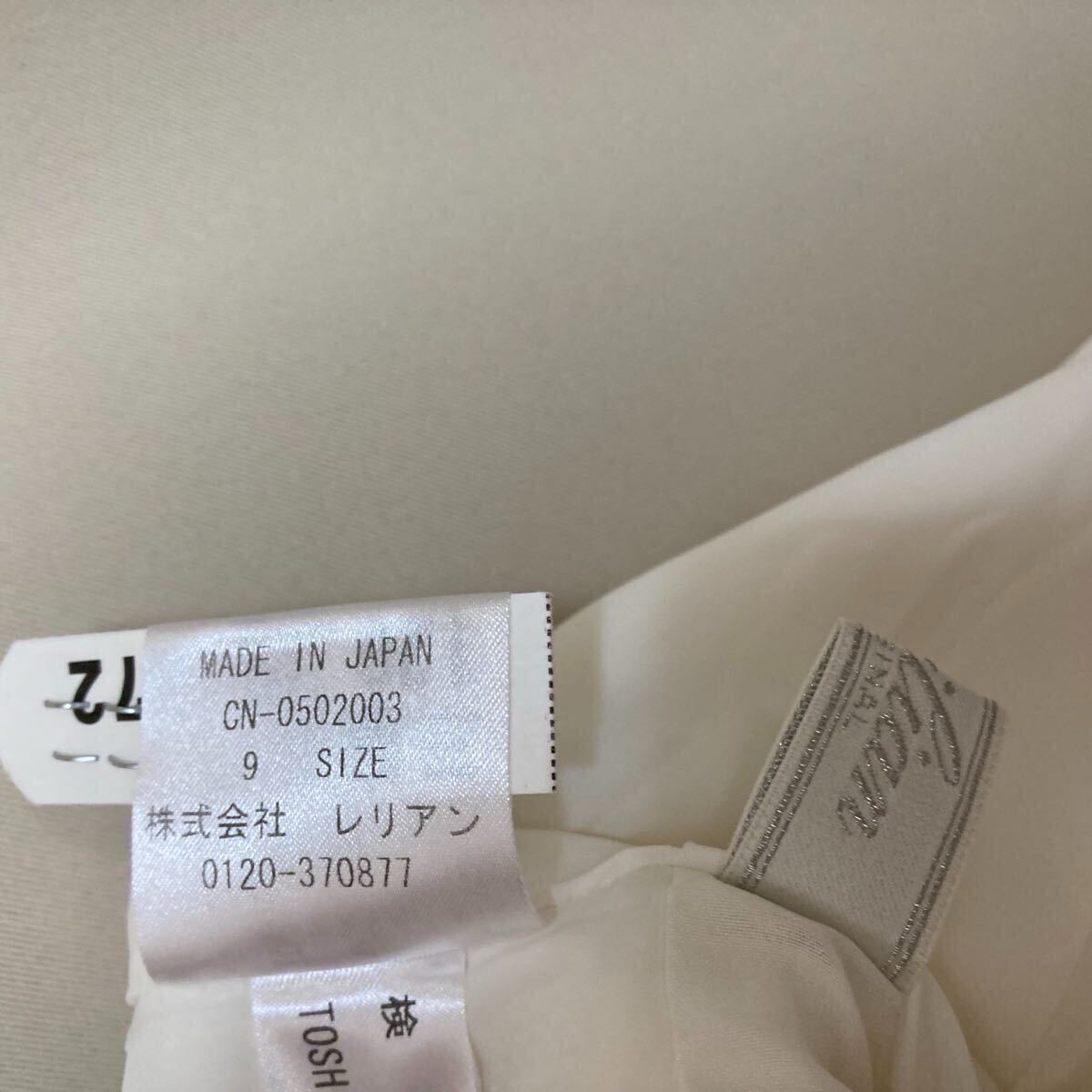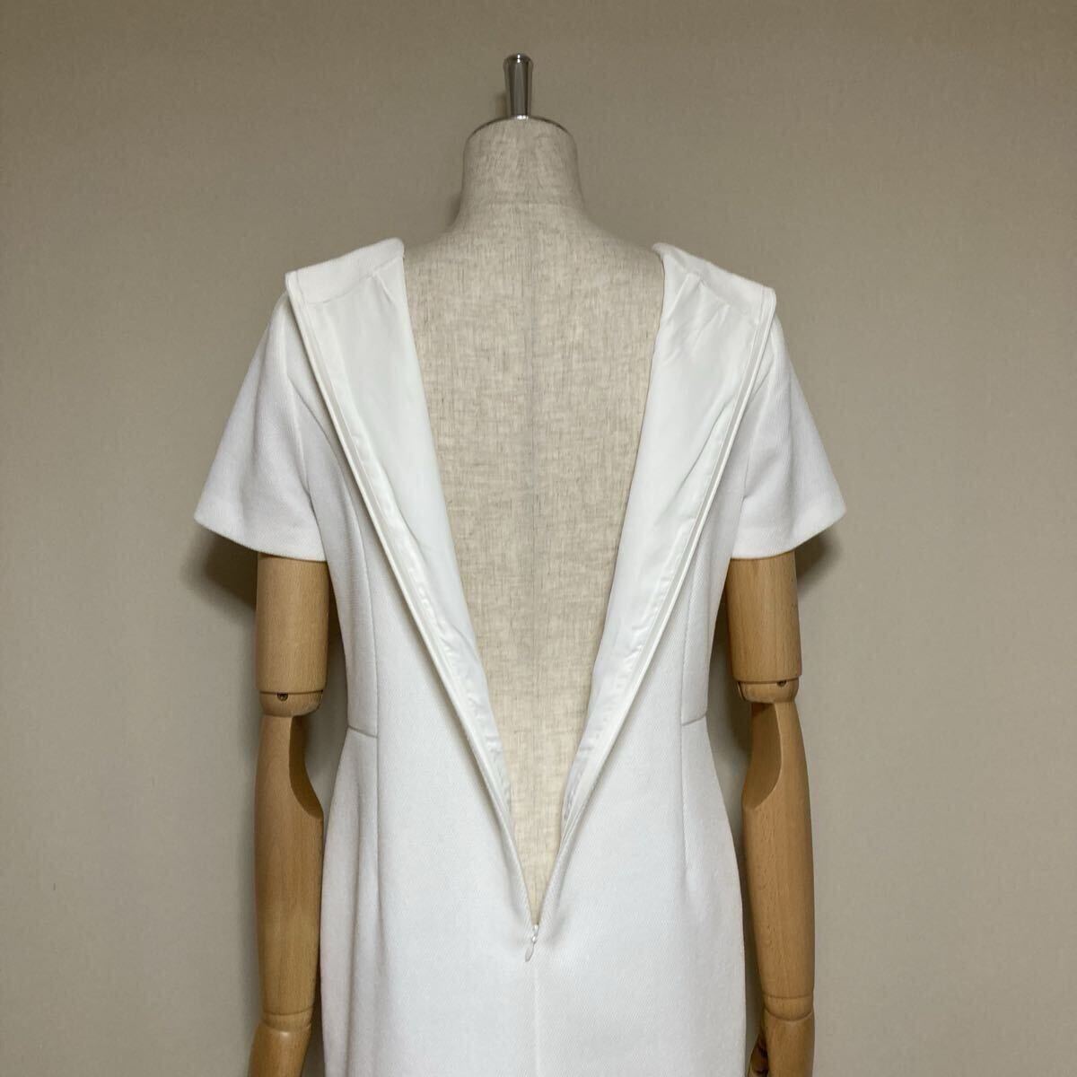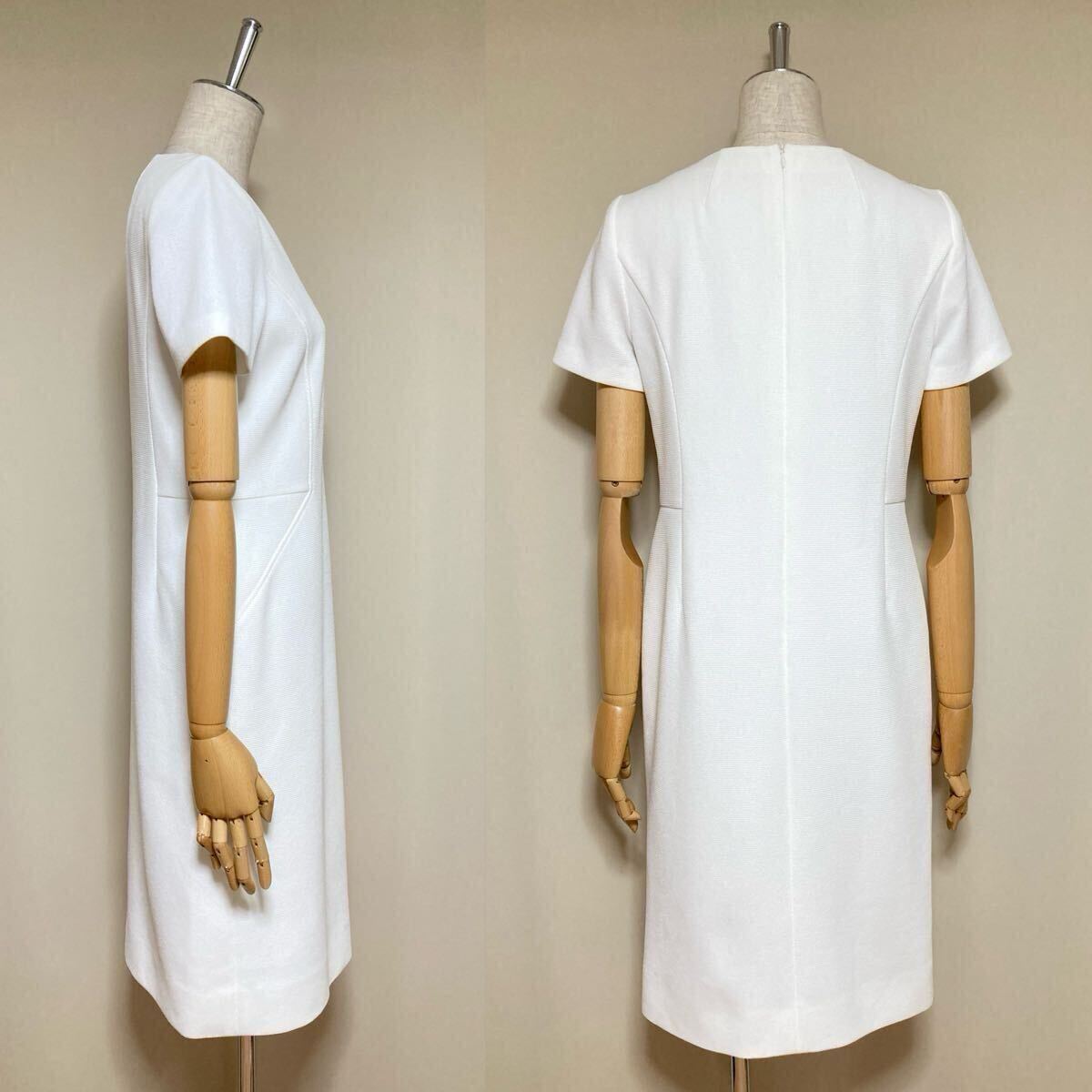 【美品】Leilian レリアン 上質 上品 Vネック 半袖ワンピース 9号/Mサイズ相当 ホワイト レディース 膝下 フォーマル 日本製