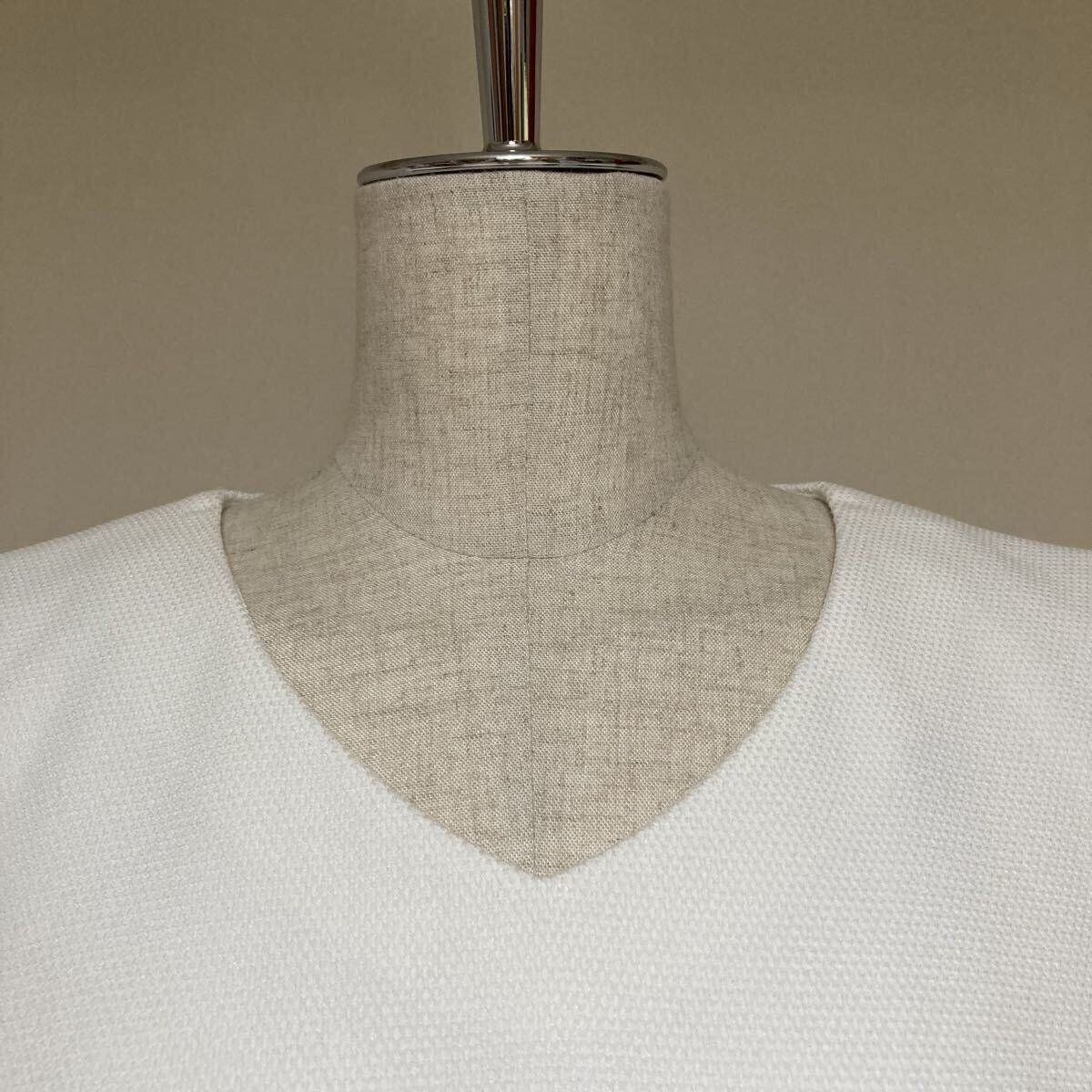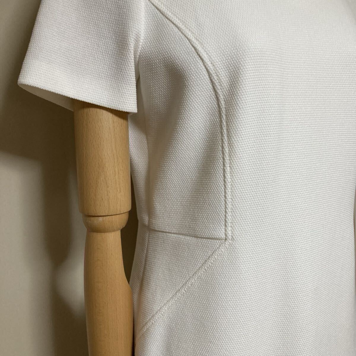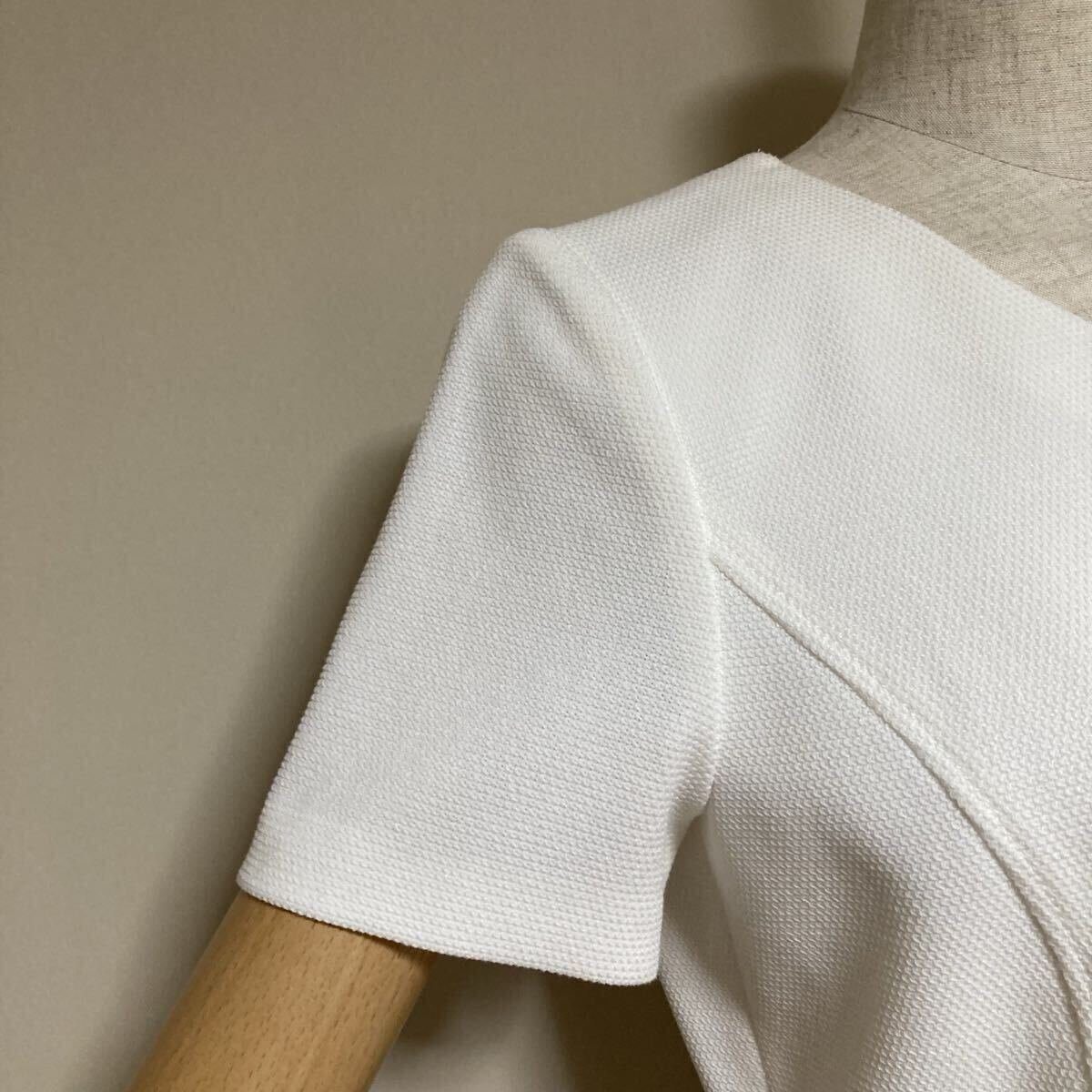 【美品】Leilian レリアン 上質 上品 Vネック 半袖ワンピース 9号/Mサイズ相当 ホワイト レディース 膝下 フォーマル 日本製