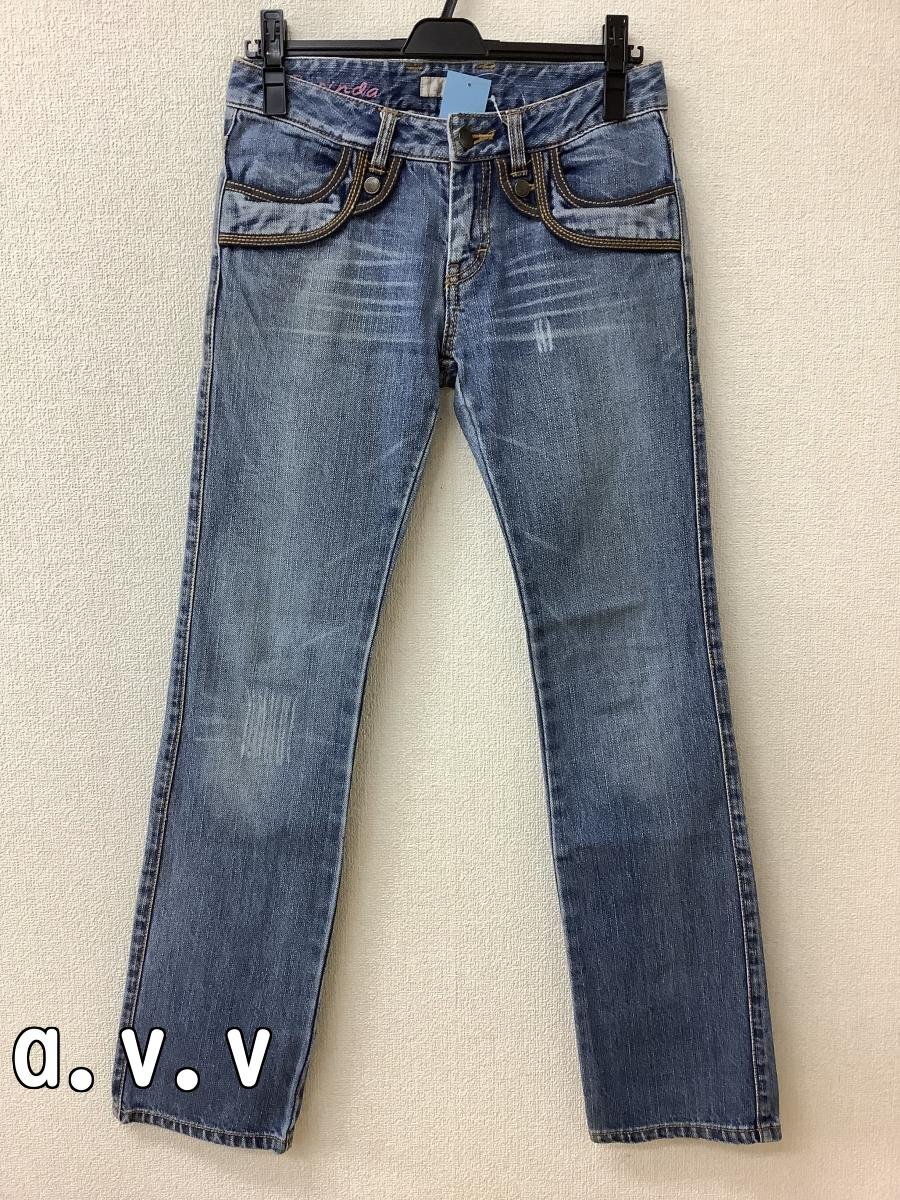 管理番号:10^138169 アーヴェーヴェ (a.v.v) 色落ち加工ブルー デニムパンツ 表示サイズ:36 実寸(参考)