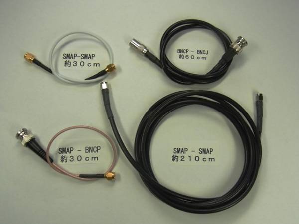 商品説明 | 種類 1:SMAP-SMAP(中継/テフロン同軸)約30cm 1本 2:SMAP-BNCP(変換/テフロン同軸)約30cm 1本 3:BNCP-BNCJ(変換/RG58A/U) 約60cm 2本 4:SMAP-SMAP(中継/RG58A/U) 約210cm 1本 追加お受けできます。 |