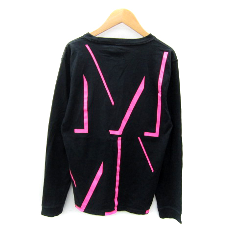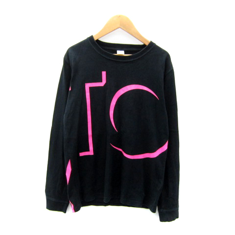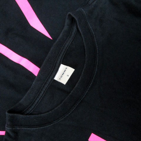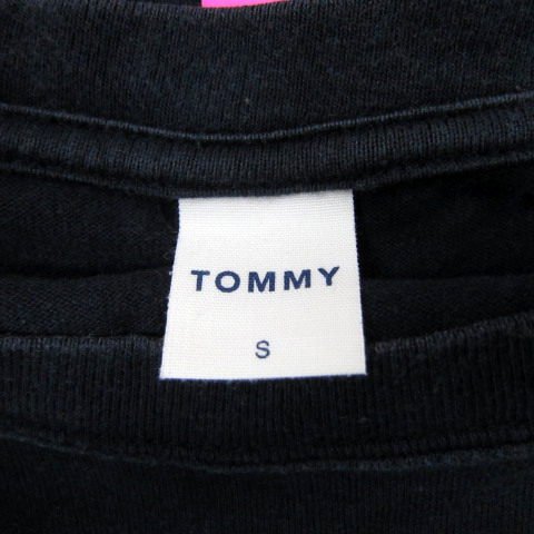 トミー TOMMY カットソー 長袖 ラウドネック プリント S 黒 ブラック /SY35 メンズ