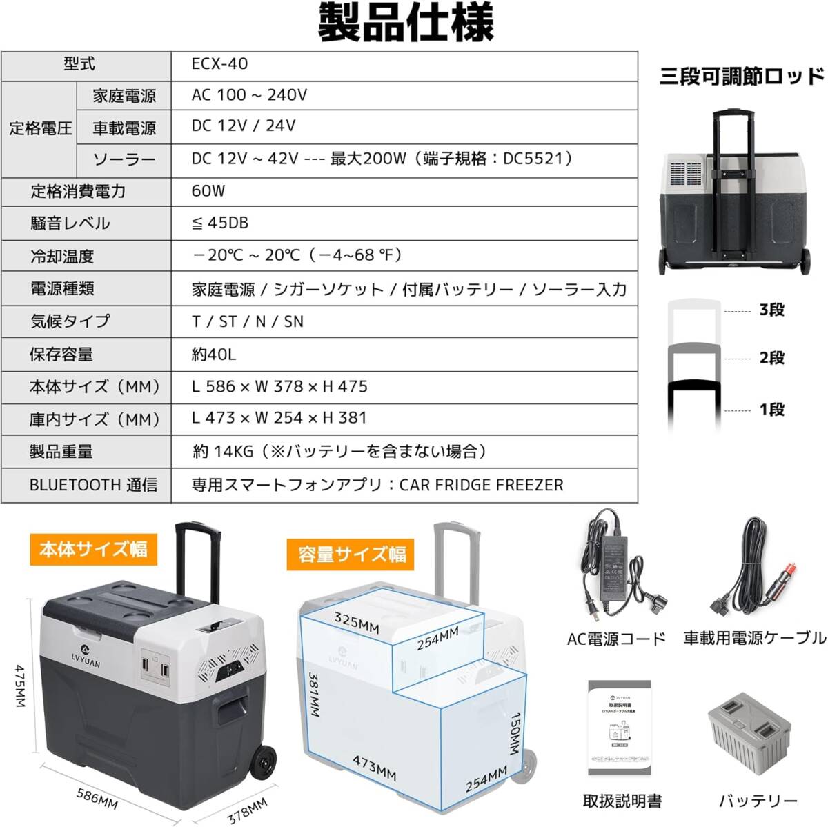 2025年最新モデル|LVYUAN 2.0 大容量ポータブル冷蔵庫 ECX40
