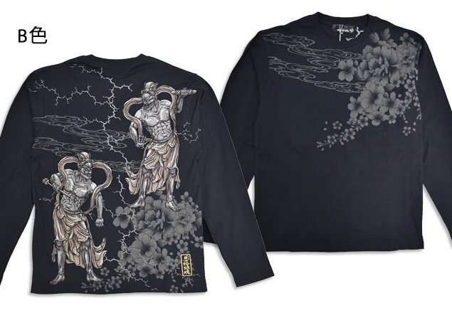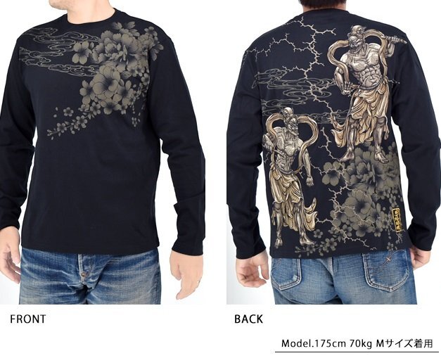 粋 仁王雷豪ロングTシャツ◆絡繰魂 B色 Mサイズ 253072 和柄 和風 長袖 刺繍 金剛力士像 阿吽