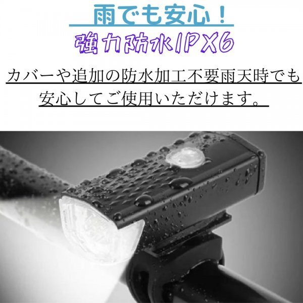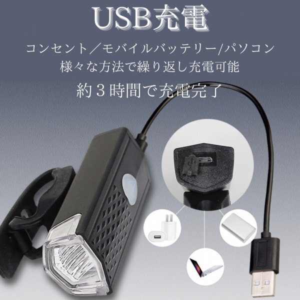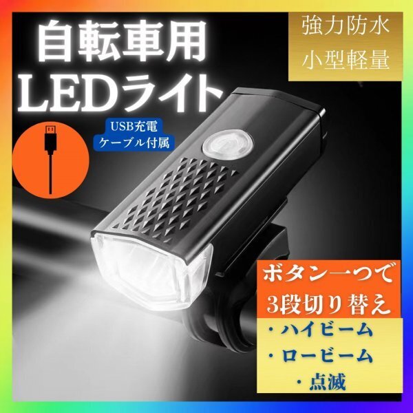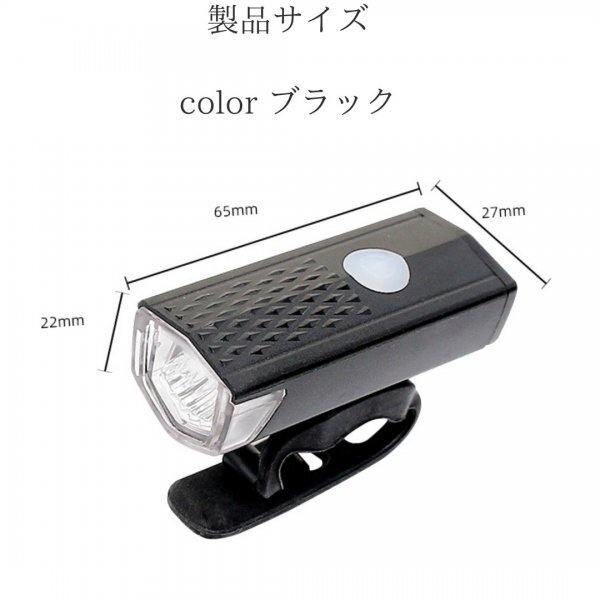 自転車 LED フロントライト ブラック USB充電式 防水 ハンドル取付け 黒