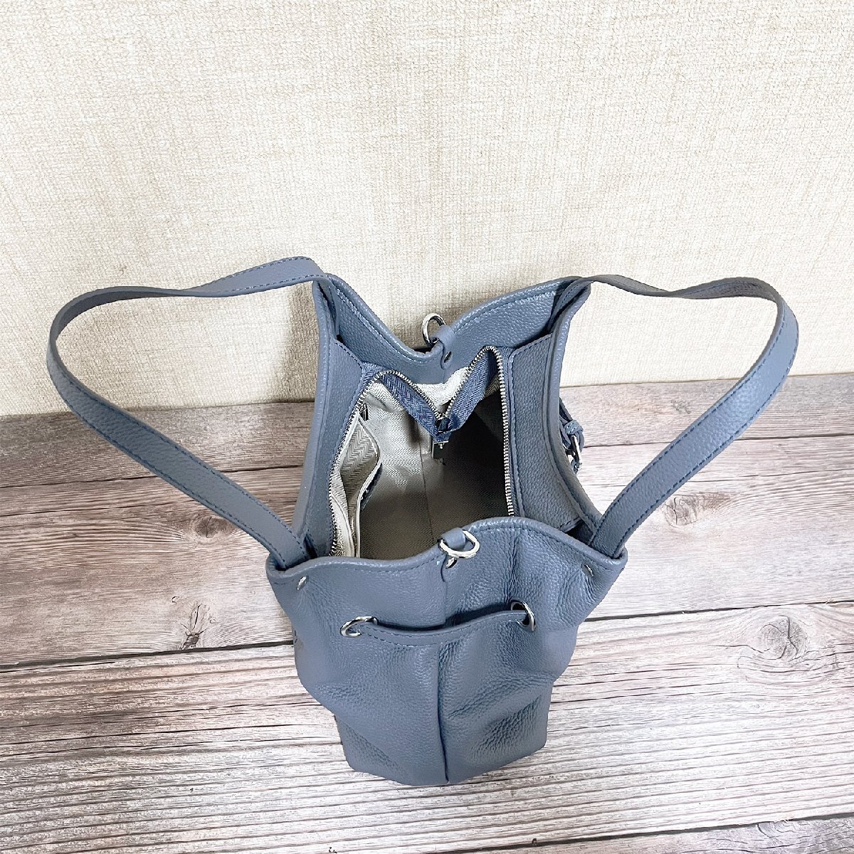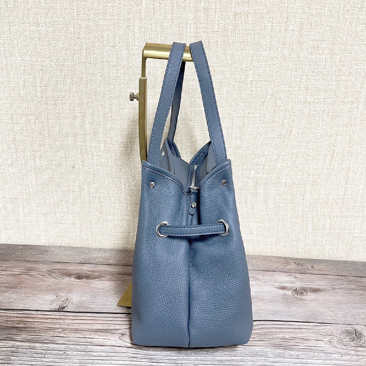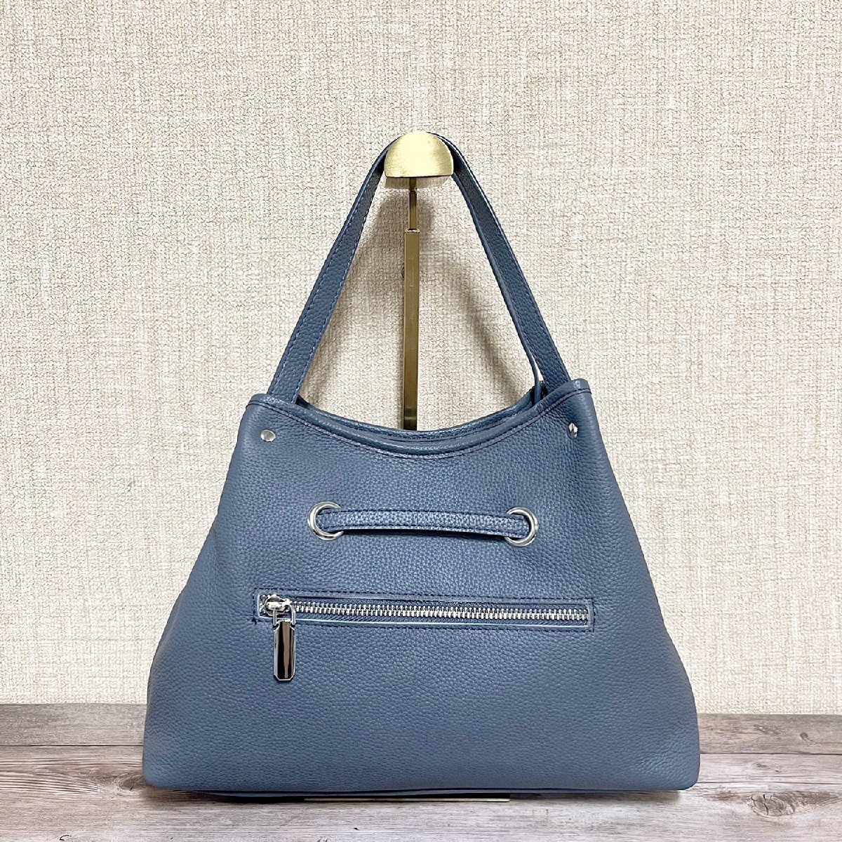 バックの底に鋲が4つ付いております、直置きでも傷や汚れからバックを守ります。サイズが大きすぎず小さすぎず、財布やキー、折りたたみ傘、モバイルバッテリーやタブレット等必要なものがちょうど収まります。ショルダーベルトが付いており、長さ調整できるなので、ハンドバッグとショルダーバッグとしてもお使い頂けます。裏面でファスナー付きポケットが付き、スマホ、カード、鍵、口紅などよく使う小物が整理できて便利だけではなく防犯もできます。