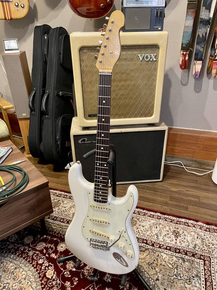 2023年にCroyTone Audio札幌店向けに特注しました。このK-Line Springfieldは、軽量なアルダーボディにライトレリックナイトロオリンピックホワイトで美しく仕上げられ、ヴィンテージCシェイプのメイプルネックにローズウッド指板、驚くほど滑らかなサテンナイトロ仕上げが施されています。