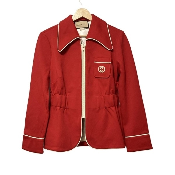 グッチ GUCCI ブルゾン サイズS 653411 - レッド×白 レディース 長袖/秋/冬 新品同様 ジャケット