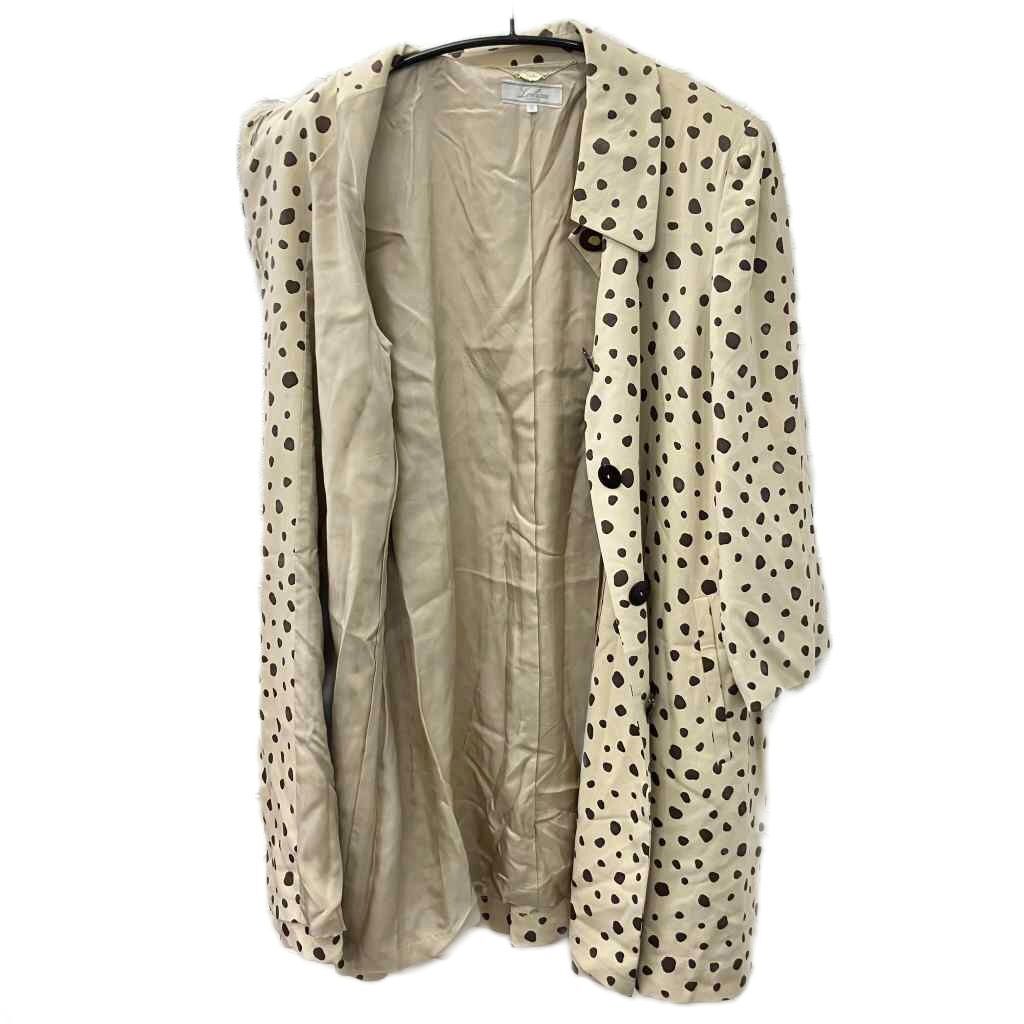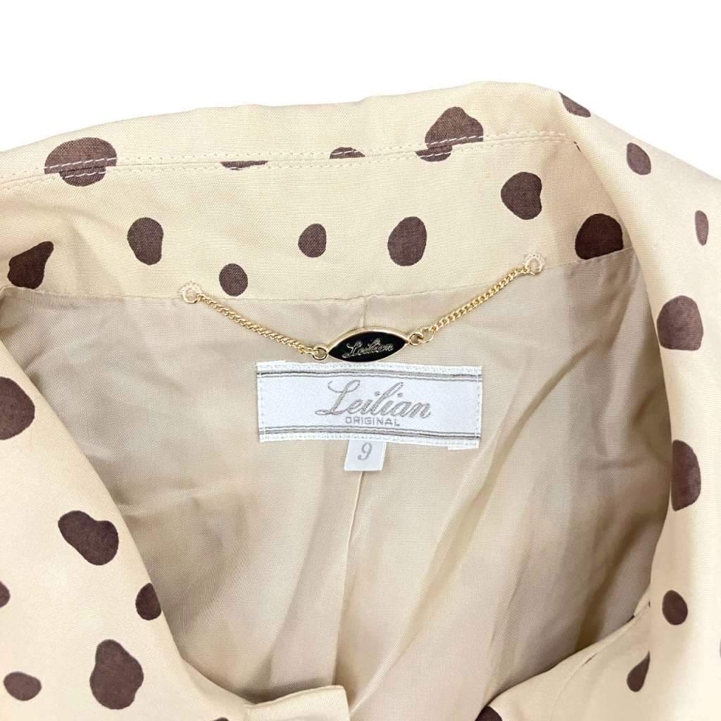 レリアン Leilian 美品 シャツワンピース チュニック ミモレ ロング 総柄 絹 シルク 大きいサイズ 9 M ベージュ 茶 ブラウン N9107J