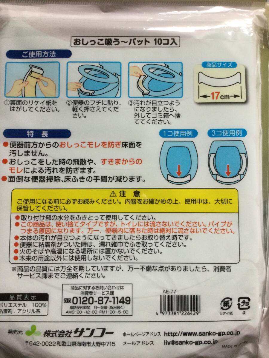 おしっこ吸う〜パット ホワイト 10個入り AE-77 tw おしっこパット トイレ 便器
