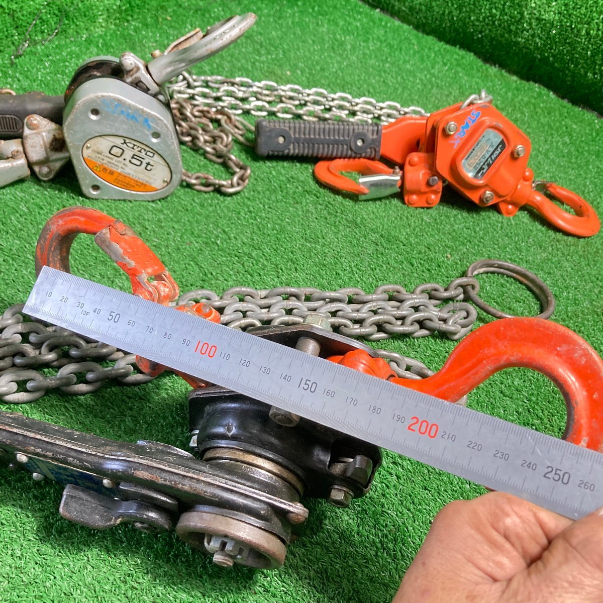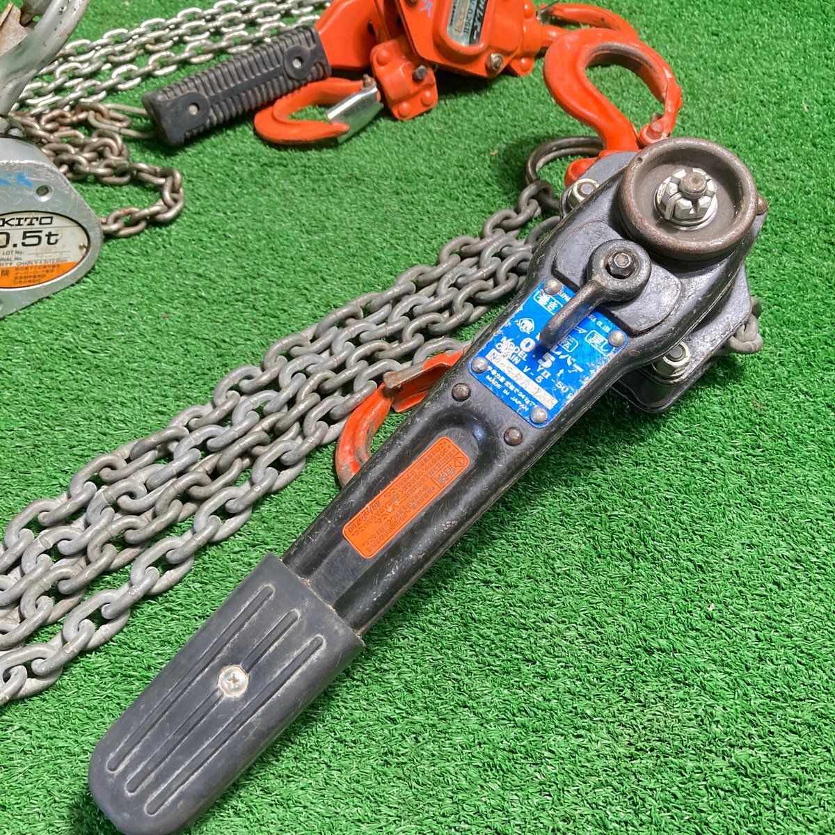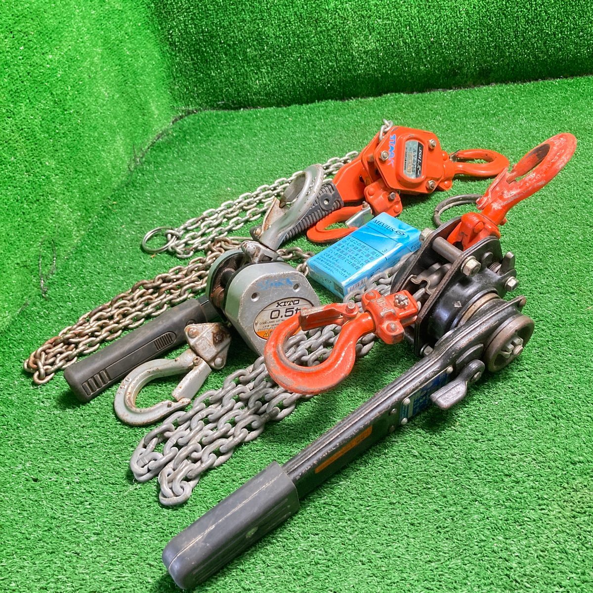 | 商品 | ス清h873 エレファント/キトー/オーエッチ レバーブロック・荷締機 レバーホイスト ■ 荷重0.5t( YⅡ-50 φ5mmx長1.5m フック間最短距離250mm ◇ LX1B φ4.3x長1.25m フック間最短距離225mm) ◇ 荷重0.25t (JLV-0.25Ⅱ φ4mmx長1m フック間最短距離225mm) ★計3点セット ★動作確認済み! |