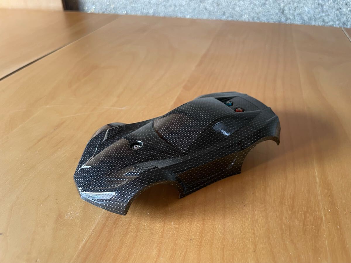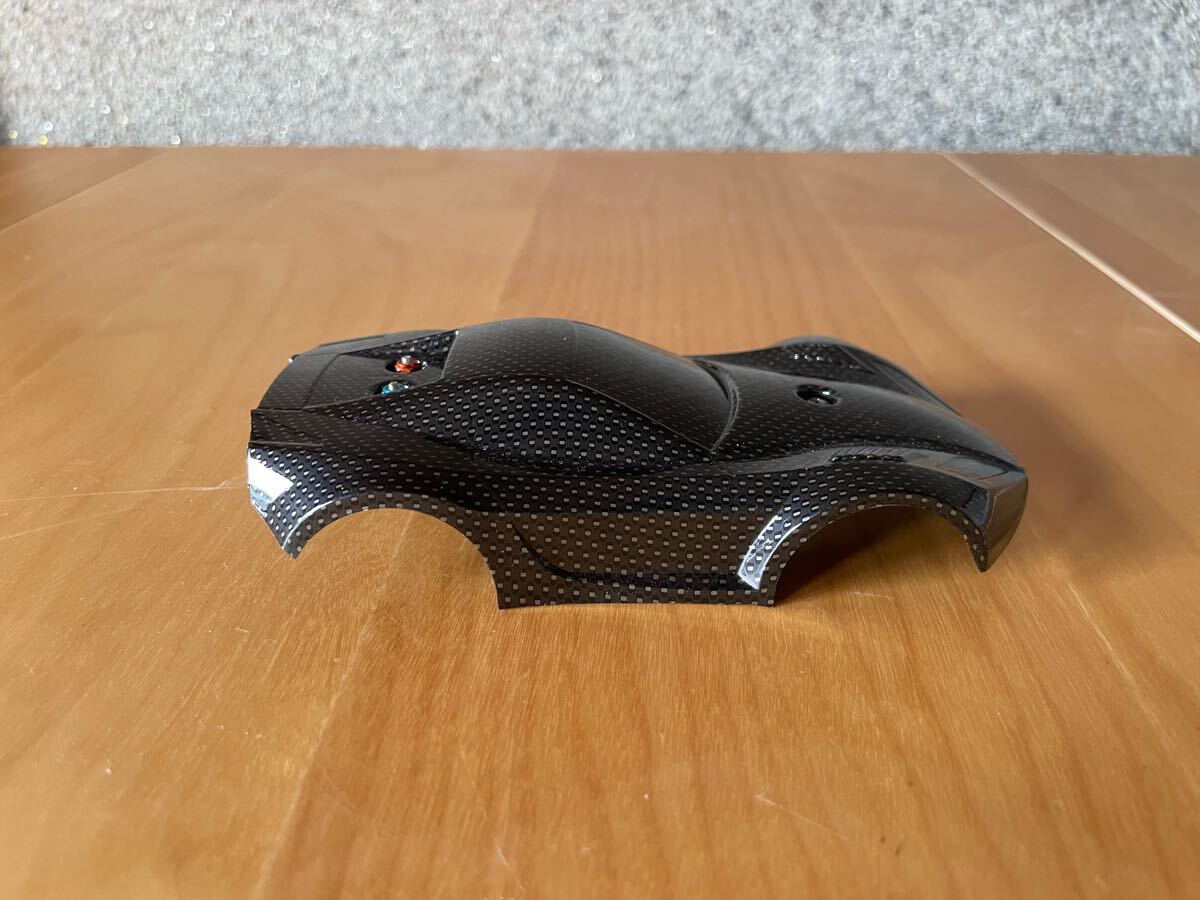 調べて欲しいですが、ストッククラスにもポリカボディーは使えますし、ボディーの改造は認められているので、カーボン調の珍しいボディーは映えるのではないでしょうか。