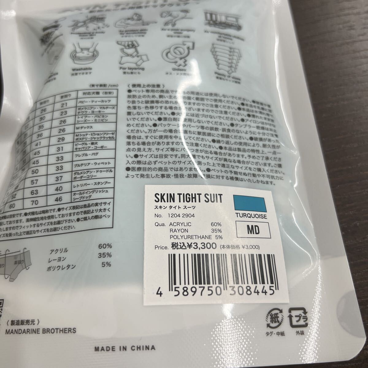 開発に時間を掛けついに完成したその名もスキンタイトスーツ。高伸縮性生地プラス豊富なサイズ展開なので、どんな犬にもフィットします。