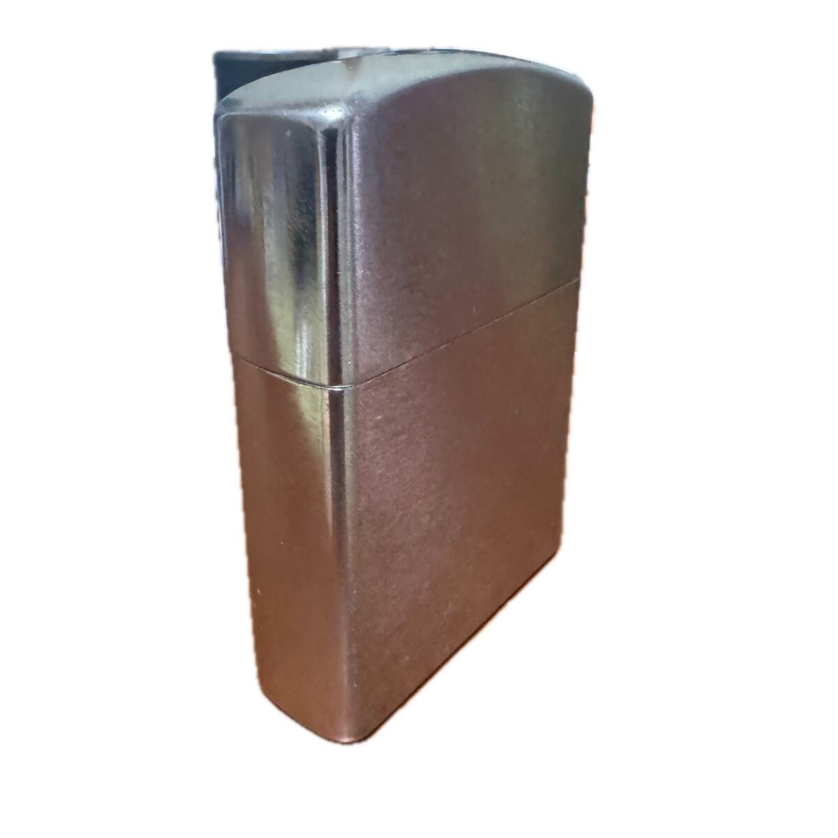 通常のZIPPOよりもひと回り大きく、手にずっしりとした重量感があります。無地のシルバー調仕上げで、シンプルかつ存在感のある外観です。