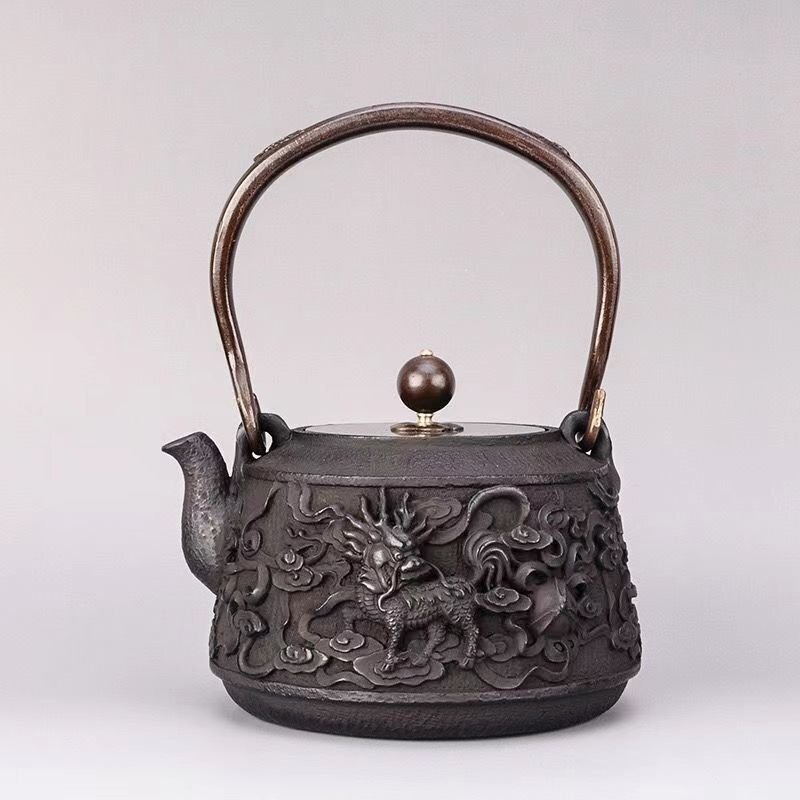 高品質/綺麗☆麒麟☆手彫り鉄壺 鉄やかん 鉄分補給 未塗装鉄器◆鉄器◆ 茶道具
