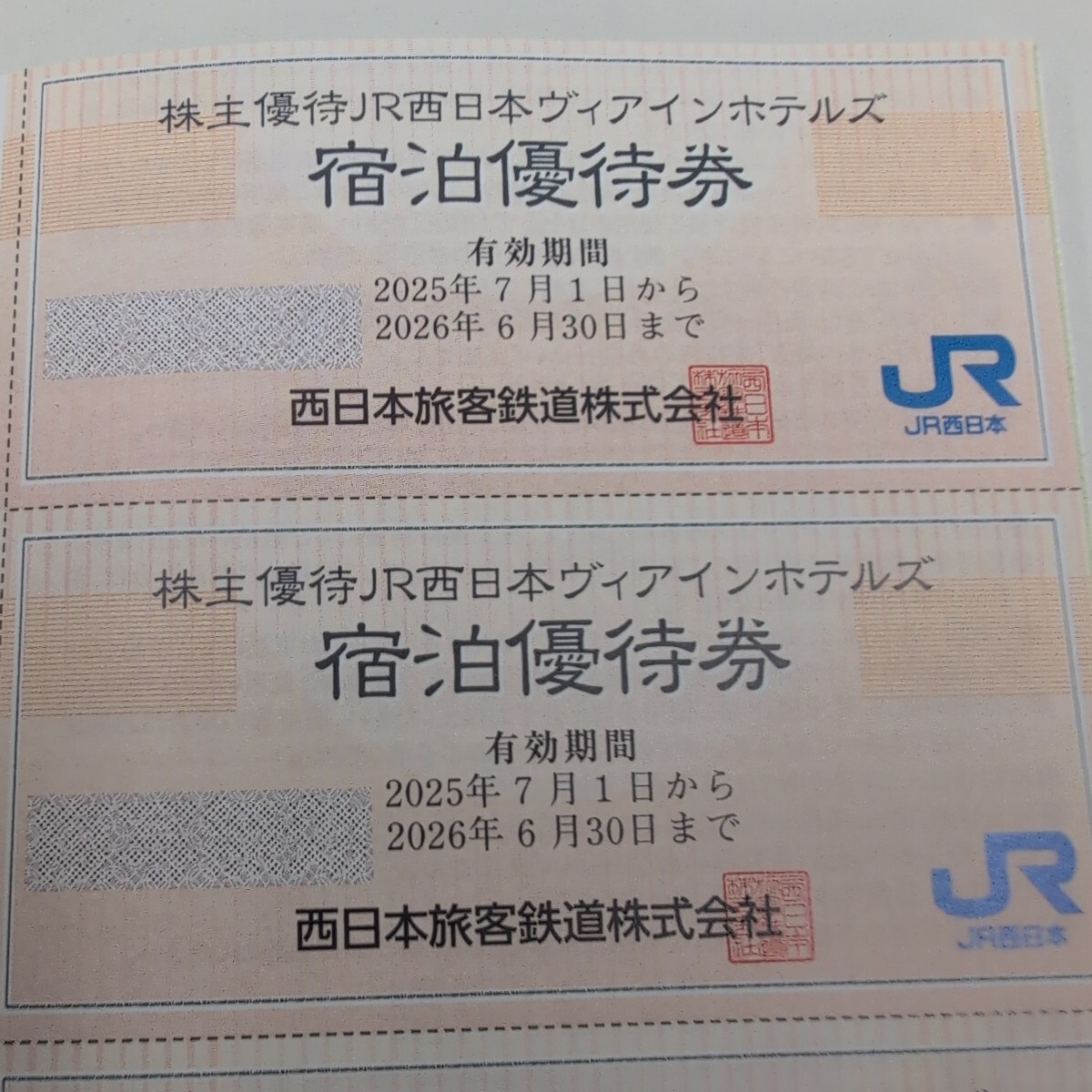 JR西日本優待券のヴィアインホテルズ割引券3枚200円(普通郵便送料込み)になります。2026年6月30日まで使える最新版です。本券1枚で1泊1室1000円の割引券です。ヴィアティンホテルズのホームぺージ又は電話予約に限り有効です。ヴィアインホテルズのアプリ会員5%割引価格でも1000円割引いたします。楽天トラベルなど他のサイトからの予約は割引券は使えませんのでご注意ください。