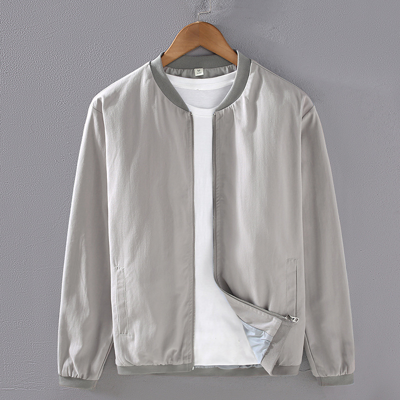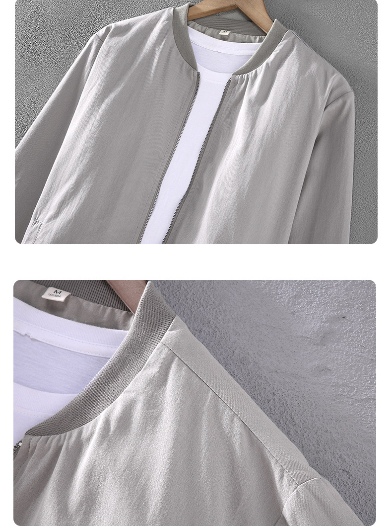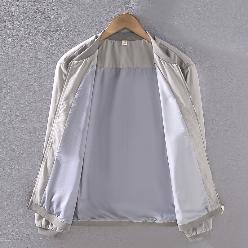 スタジャン 無地 メンズ 裏地付き ジャケット ブルゾン スタジアムジャンパー 野球服 薄手 春秋 アウター ライトグレー/A1228-2XL