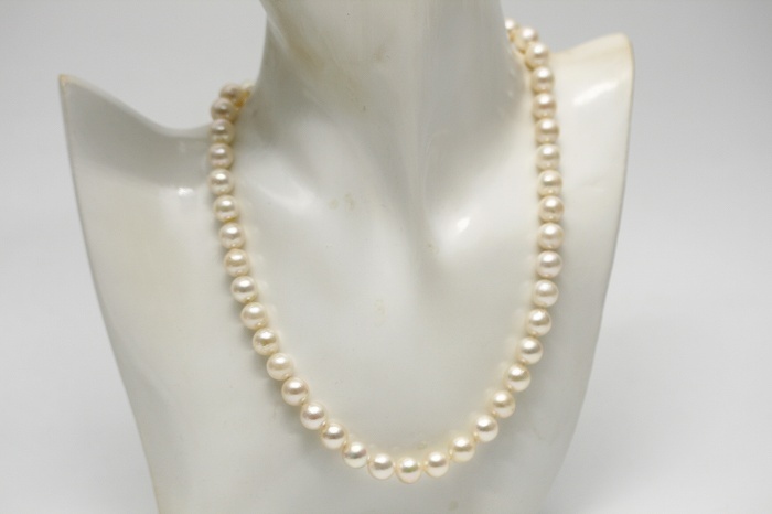 8.5-9.0mmサイズの大粒サイズのアコヤパールネックレスです。 胸元にシンプルに置くだけで全体のスタイルが引き締まります。 形はラウンド~オフラウンドシェイプとなります。 正統派すぎると普段使いにも少し使いずらいイメージがございますが, こちらは気兼ねなくデイリーにもお楽しみ頂けるかと思います。 上品なホワイト系カラーは様々なスタイルに合わせ易くオススメです。 こちらはオールノット仕上げになっております。 | |