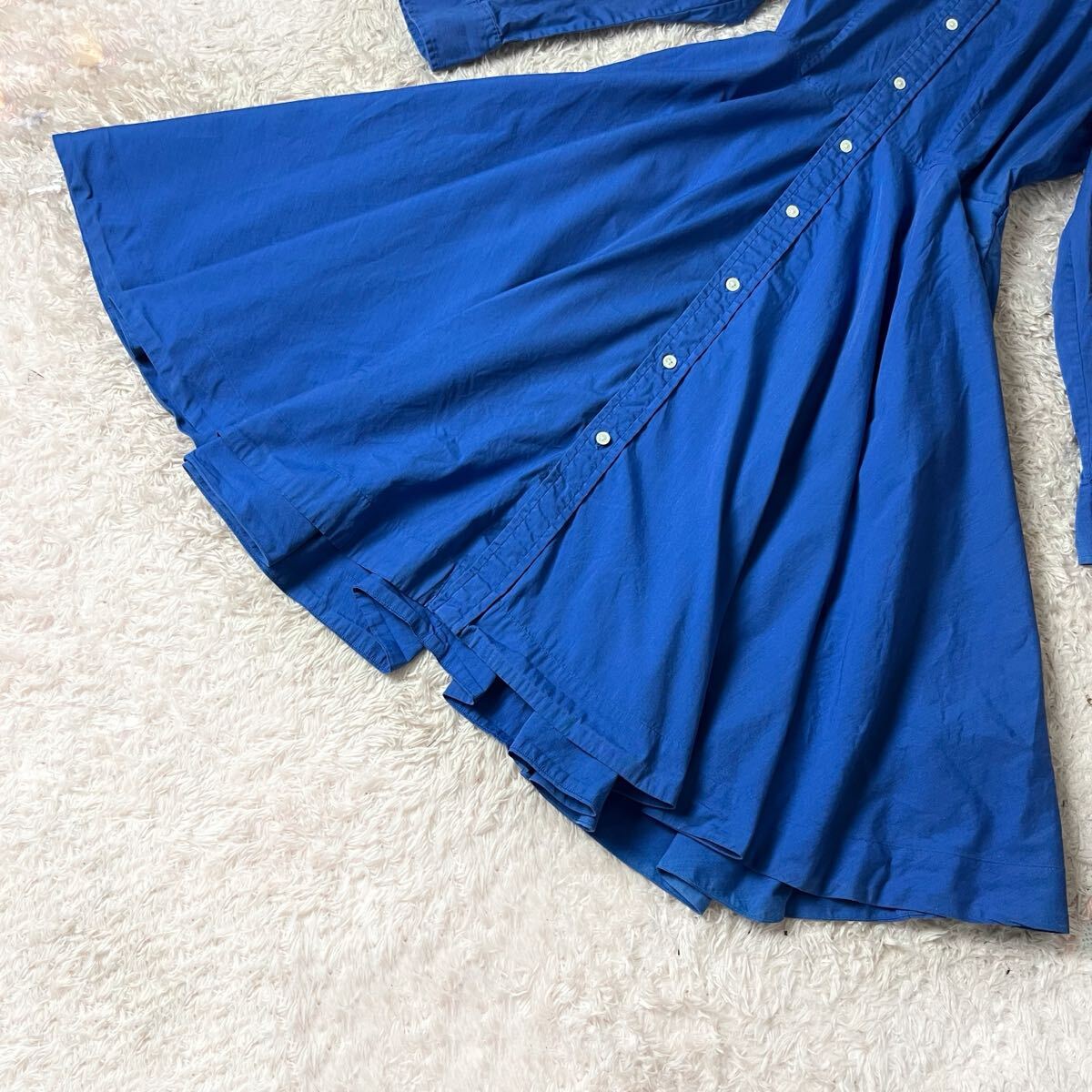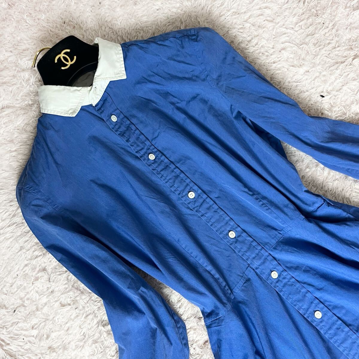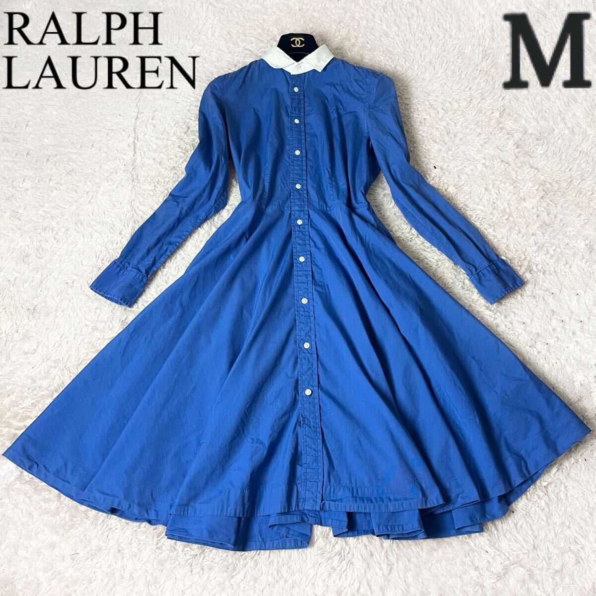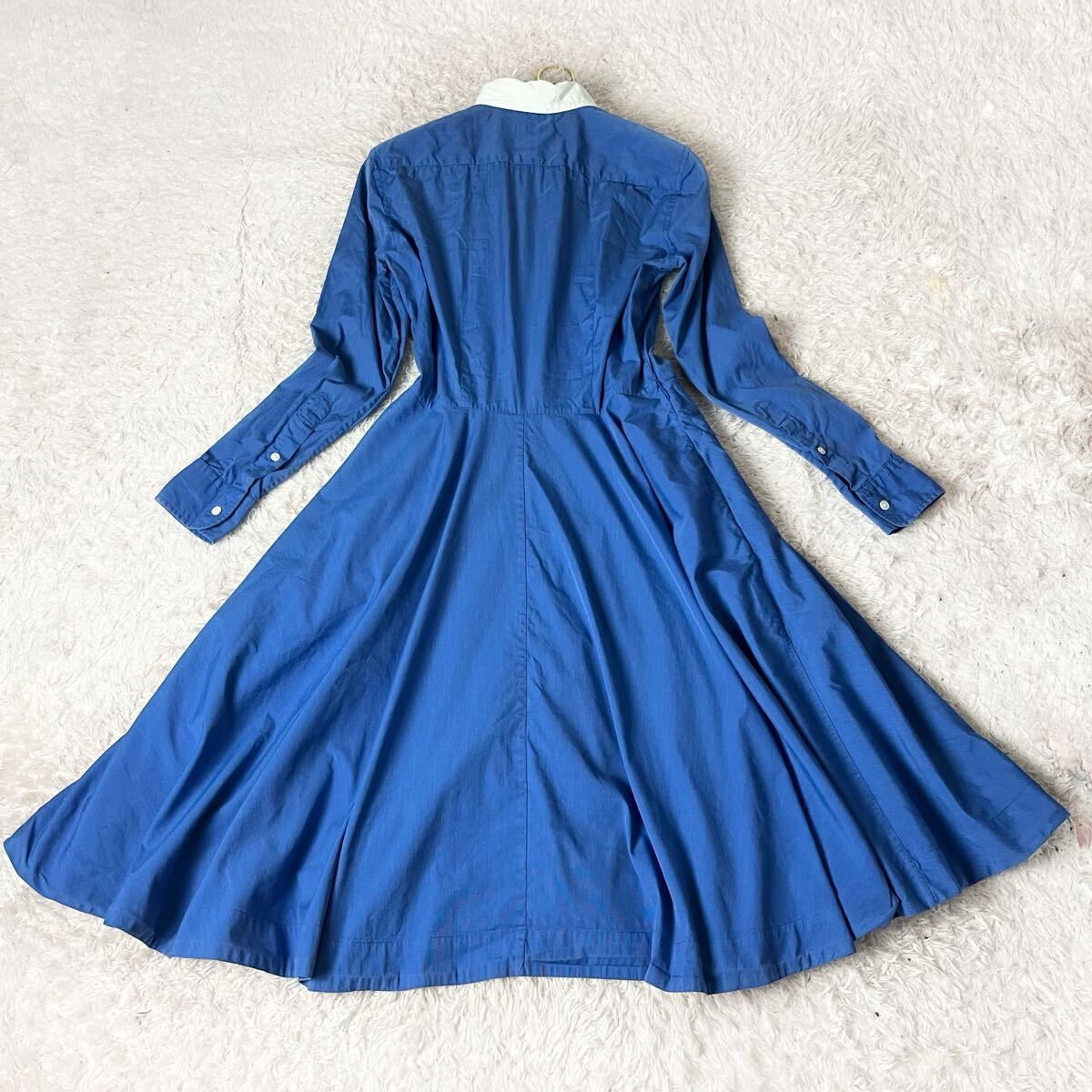 POLO RALPH LAUREN ポロラルフローレン シャツワンピース Aライン フレア 襟 ボタン ブルー 青 膝丈 ひざ丈 長袖 バイカラー レトロ M
