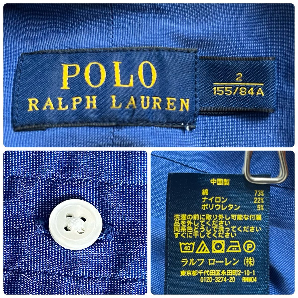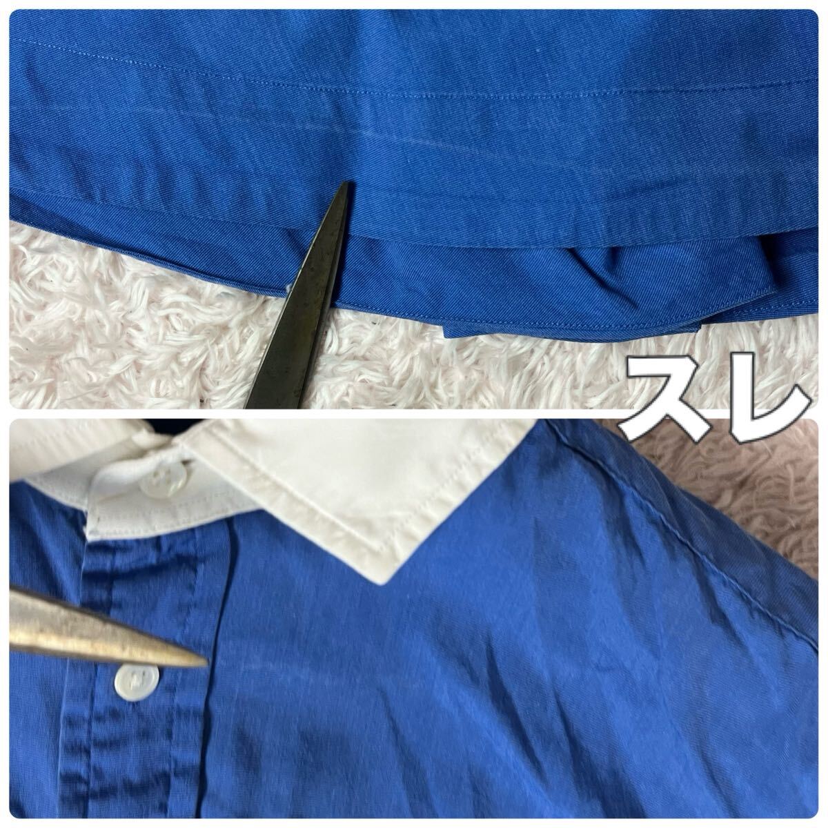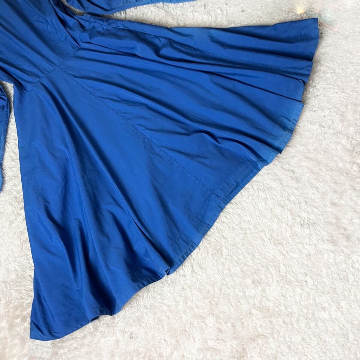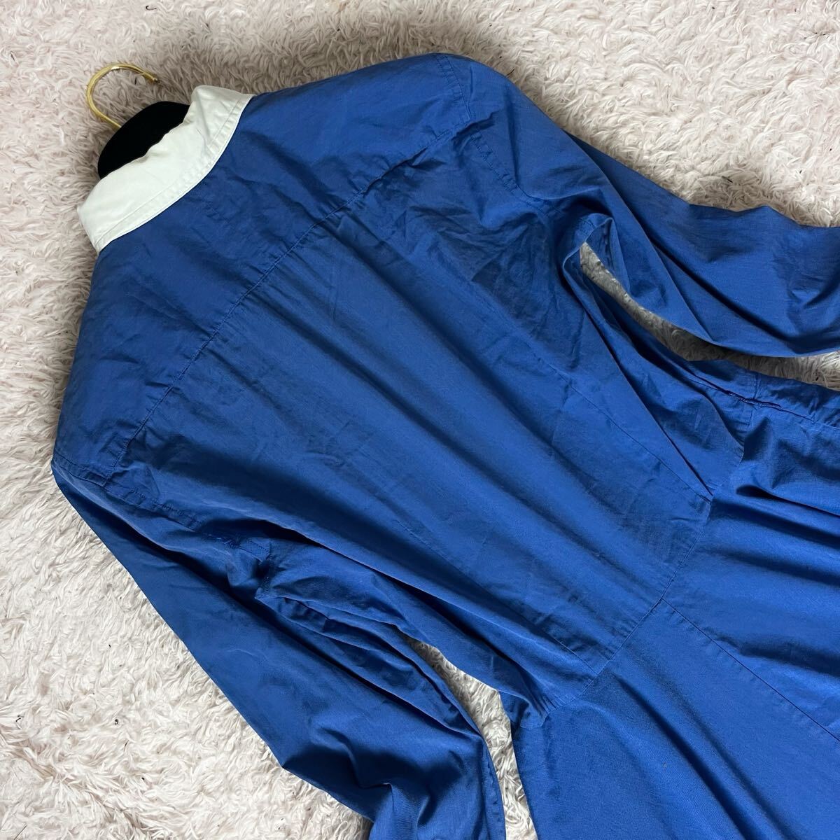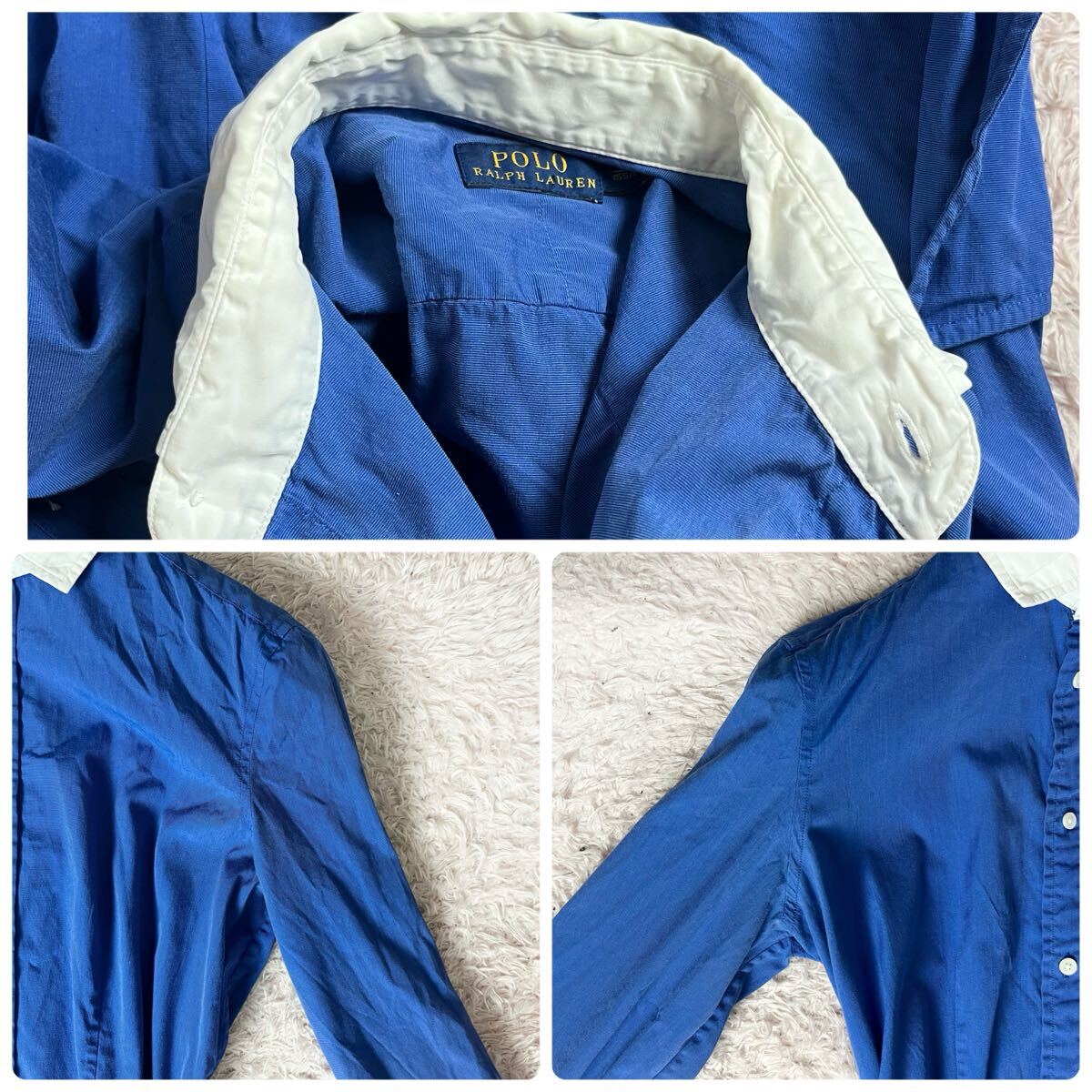 POLO RALPH LAUREN ポロラルフローレン シャツワンピース Aライン フレア 襟 ボタン ブルー 青 膝丈 ひざ丈 長袖 バイカラー レトロ M