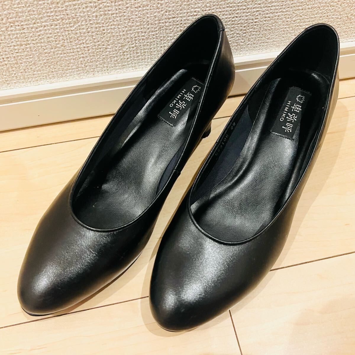卑弥呼 HIMIKO ヒミコ パンプス レザー ブラック 黒 22cm 冠婚葬祭 フォーマル 通勤