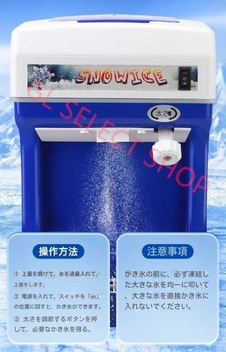 家庭用および商用のこのかき氷機は、冷凍飲料の製造に適しています。注意:このかき氷機は2-4cmの小さな氷しか砕くことができません。