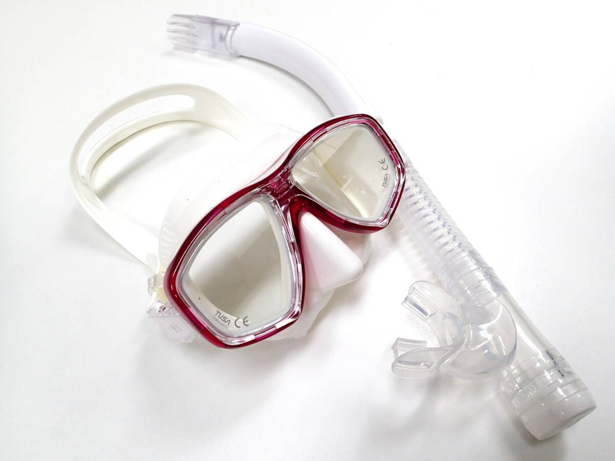 スキューバダイビング器材メーカー大手のTUSAが販売しているフリーダムセオスマスクとインプレックスハイパードライスノーケルのホワイトシリコン・BP(ブリリアントピンク)です。マスクはフィット感抜群で広視野で明るくよく周りが見えるマスクです。ストラップ調整もワンタッチで行える使いやすさです。スノーケルも咥え心地よく、顎が疲れない耐久性の高いスノーケルです。商品は定価¥17500で販売しているものですが、出品価格¥8800で出品させていただきます。商品は新品未使用で誰かの肌にまたは、口についた物ではないので商品到着後も安心してご使用頂けます。送料込みの価格で大変お買い得になってます。どうぞよろしくお願い致します。