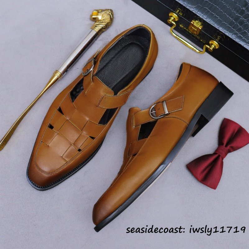 入手困難★サンダル イギリス風 本革 職人手作り 編み込み ビジネスシューズ 牛革 レザーシューズ スリッパ 紳士靴 通気性 ブラウン 27.5cm
