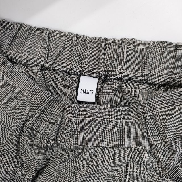 仕様 | フロント:なし ポケット:あり 透け感:なし 裾:シングルステッチ ウエスト調整:ゴム(紐あり) 裏地:なし |