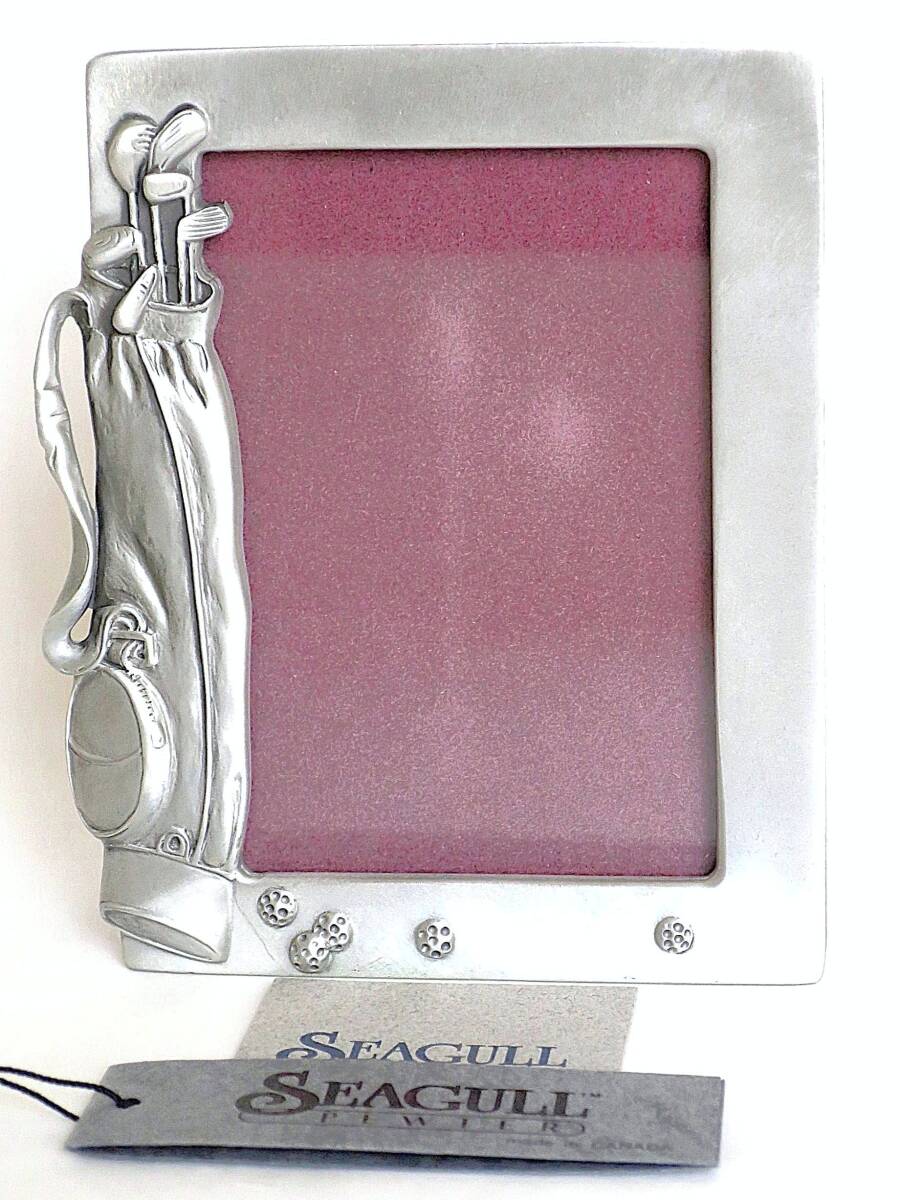 ヴィンテージ 1989年カナダ製 錫製 SEAGULL PEWTER シーガル ピューター フォトフレーム サイズ(9.8×8.2cm) ゴルフ系モチーフ