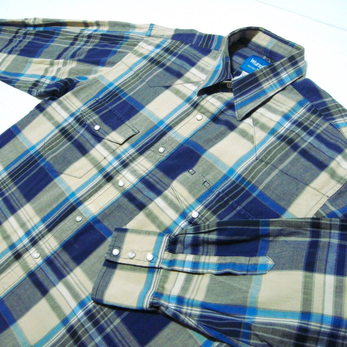 【 見てくださり 感謝します 】 【ブランド】 Wrangler / ラングラー ウエスタンの老舗 ラングラー ■ RODEO SNAP SHIRT ウエスタンシャツ フロントヨーク & バックヨーク アメリカ古着 USA製ではありません v(^-^)v ■ サイズが合う方は、 是非!是非!!ゲットしてやって下さい (^-^)v 【表記サイズ】 ?おそらく USA LGG 日本サイズ XL 2L ぐらいです。 【実寸】 肩幅 53cm (左肩ステッチ〜右肩ステッチまで計測) 身幅 61cm (脇あたりで計測) 着丈 83cm (バック襟の付け根から計測) 袖丈 61cm (肩からの計測) 素人採寸です。多少の誤差はご了承下さい! 【素材】 ?おそらく コットン 100 % ポリエステル % 少し麻が入ったような生地感です ? 【状態】 USED アタリが出始めています。 裾に淡いしみ。ボトムにシャツを入れると隠れる部分です (写真)。 襟 ・ 袖口に擦れ無し ^ ^ v (写真)。 【 見てくださり感謝いたします 】 ↓よろしければ、青地を クリックして下さい。 他にも出品しています。ご覧いただければ幸いです。 ■ リーバイスデニムとウエスタンシャツを主に出品させていただいています。 ■ ネイティブ柄 ・ ビンテージ 色々なウエスタンシャツを常時出品中 他にも出品しています。ご覧いただければ幸いです。 ↑よろしければ 青地を クリックして下さい。 N11 | ||||