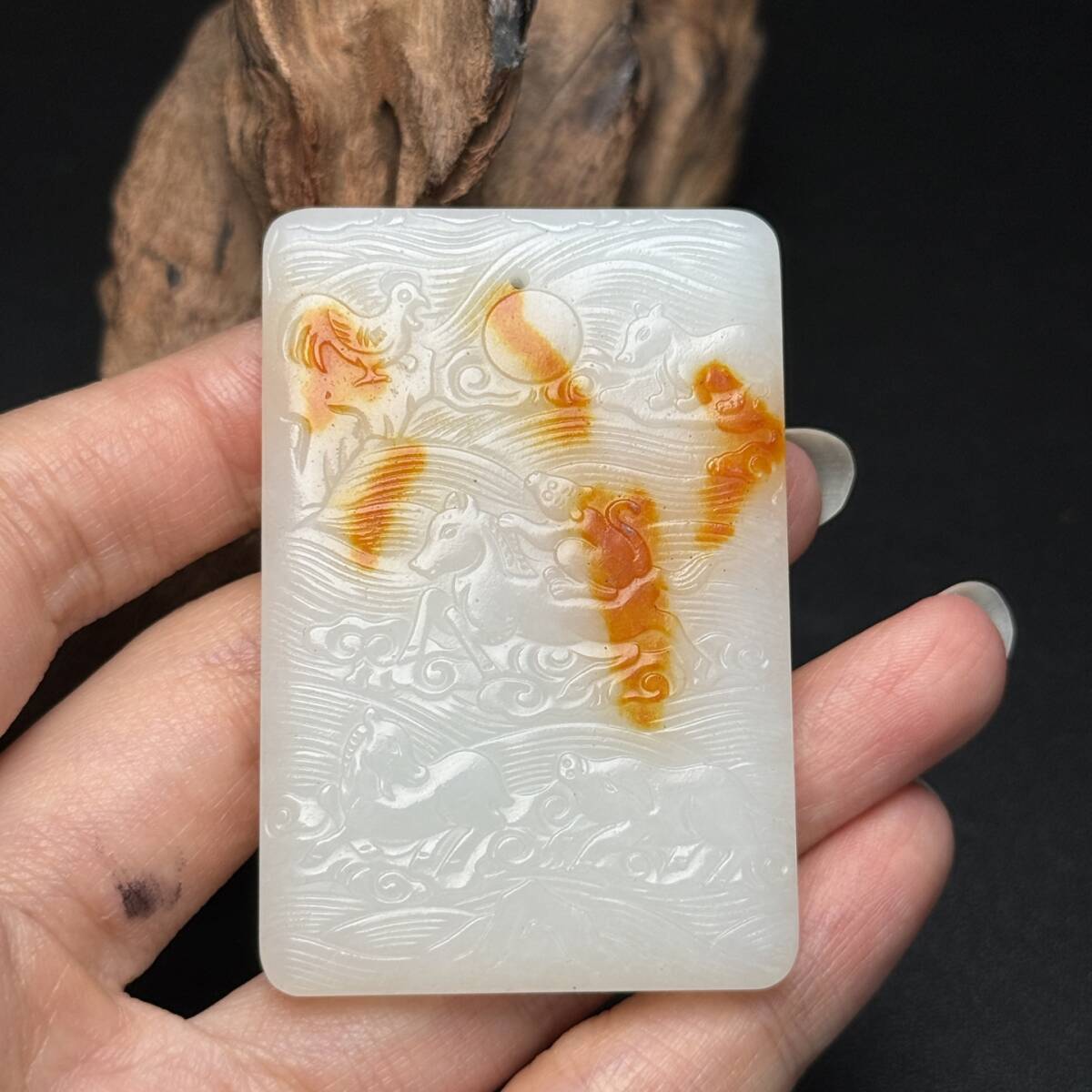 *珍品旧蔵* 明清時期 玉彫 和田玉 玉牌 彫刻十二生肖 玉質細膩白潤 包漿一流 極細工 唐物 中国古玩 骨董品 H48