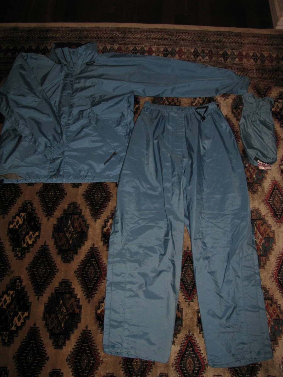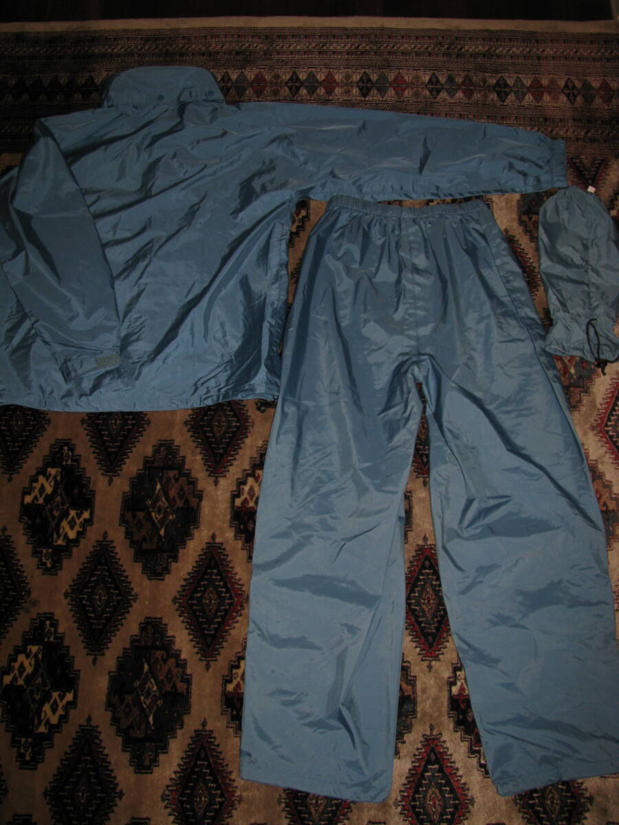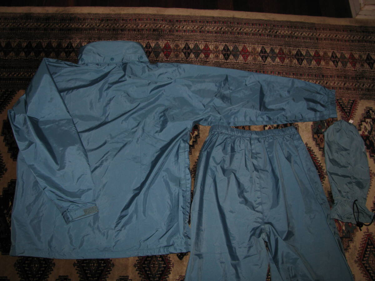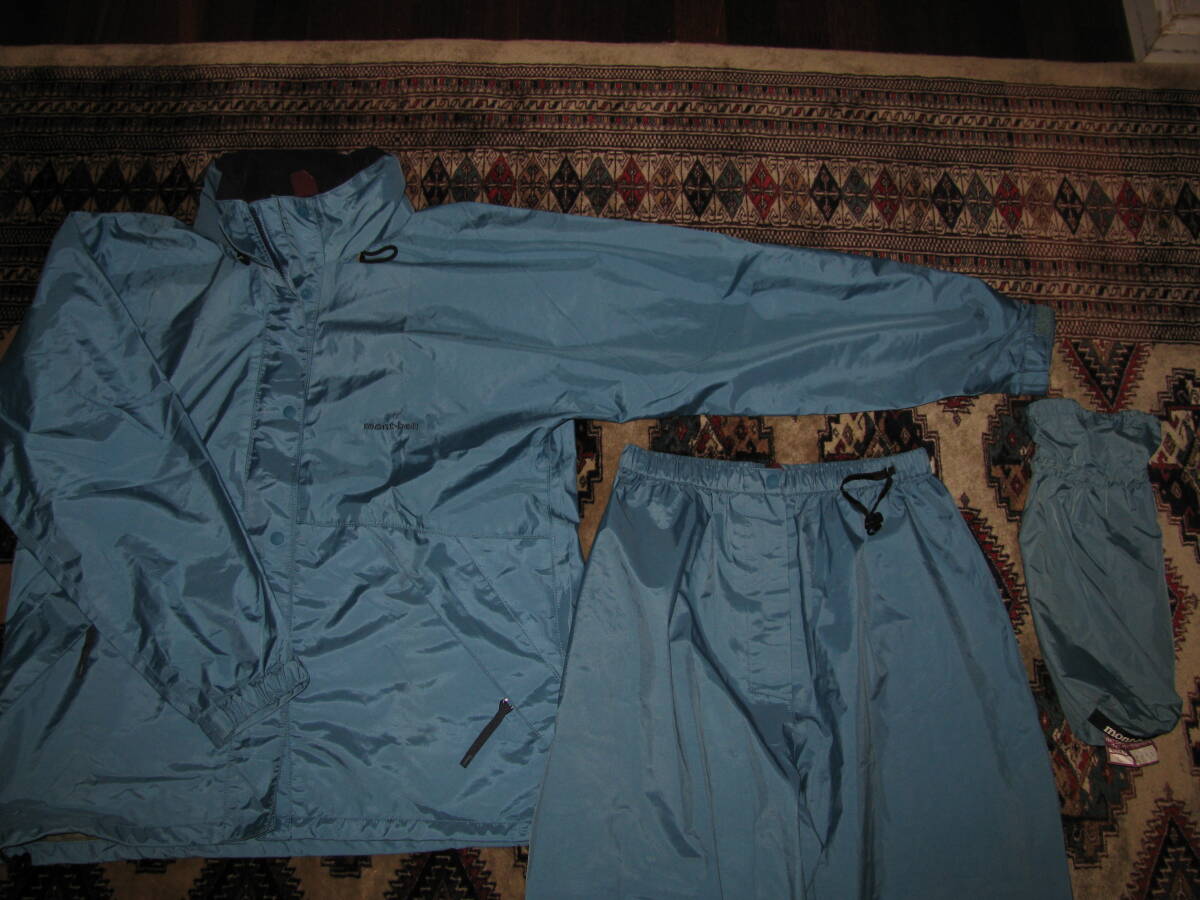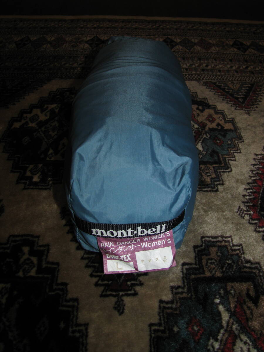 モンベルのゴアテックスレインウエア レインダンサー上下セット女性用です。色はサックス、サイズはwomen's L、ポーチ付き、使用歴は少ないです。レターパックプラスでお送りいたします。