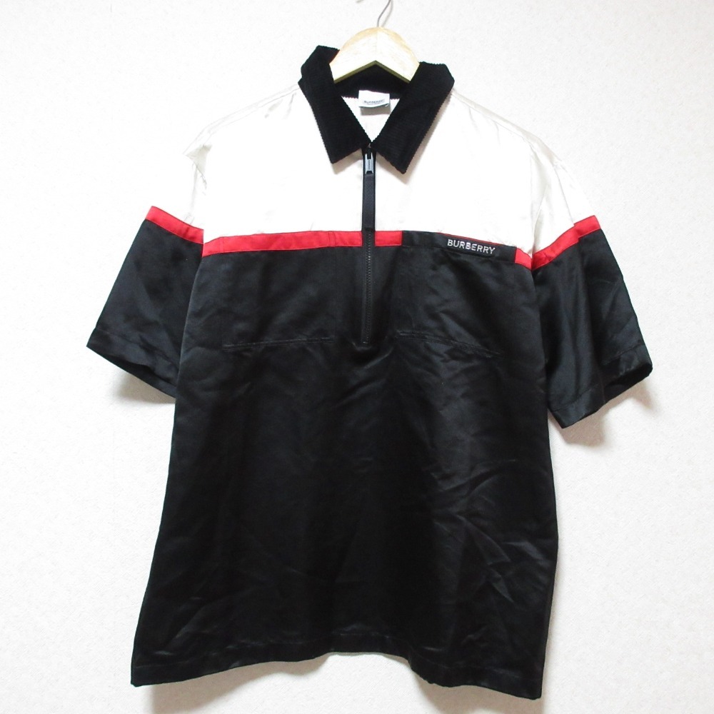 商品名:BURBERRY バーバリー ハーフジップ ロゴ 半袖 ボーリングシャツ 38 ブラック