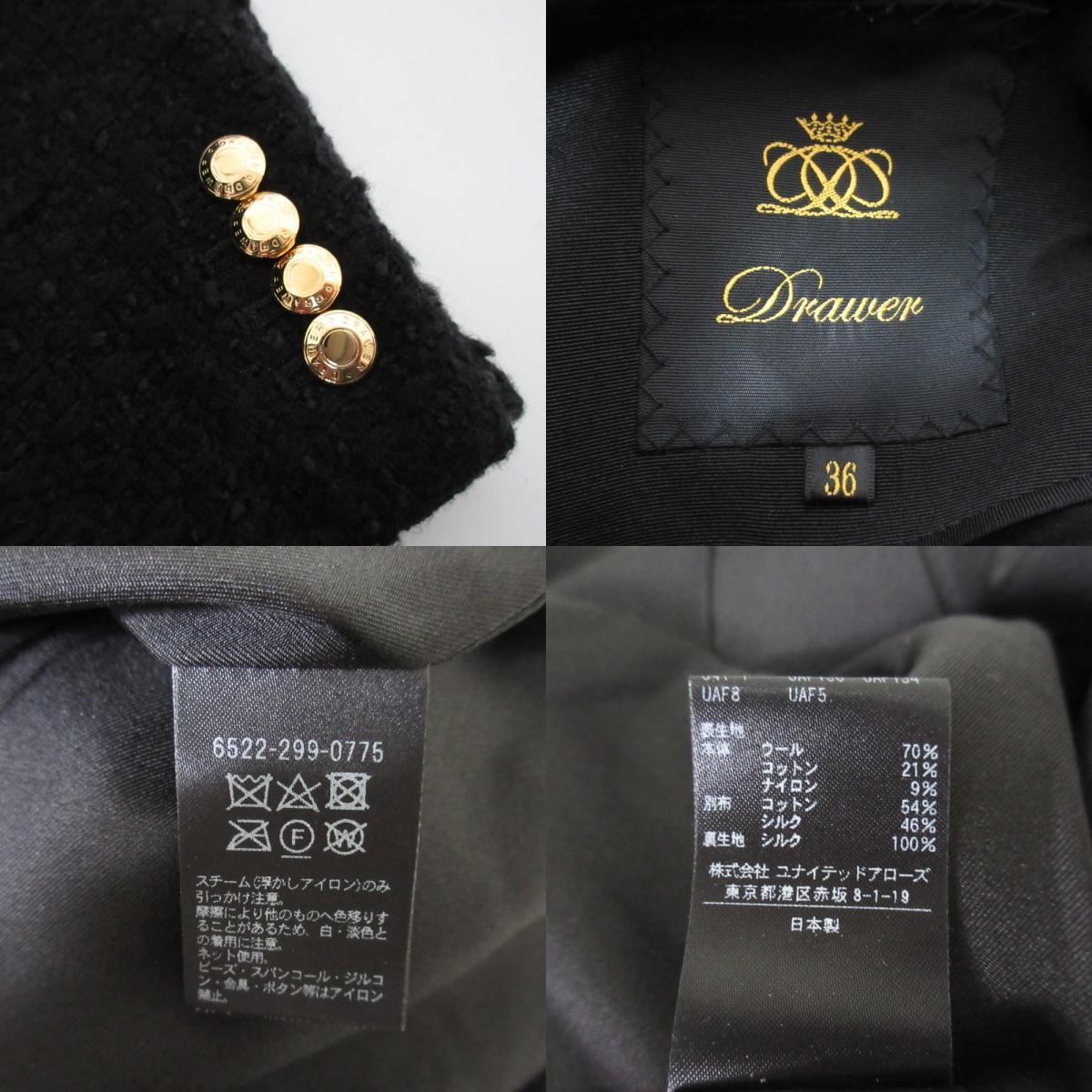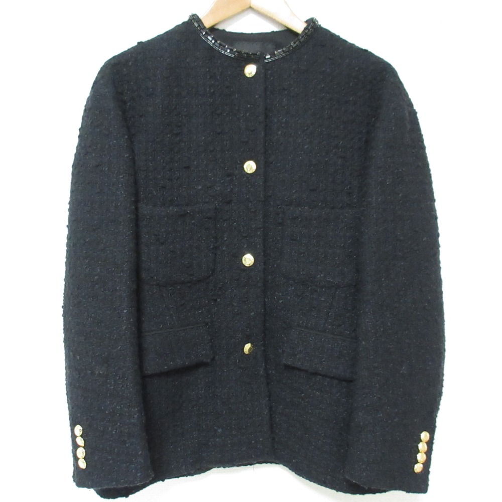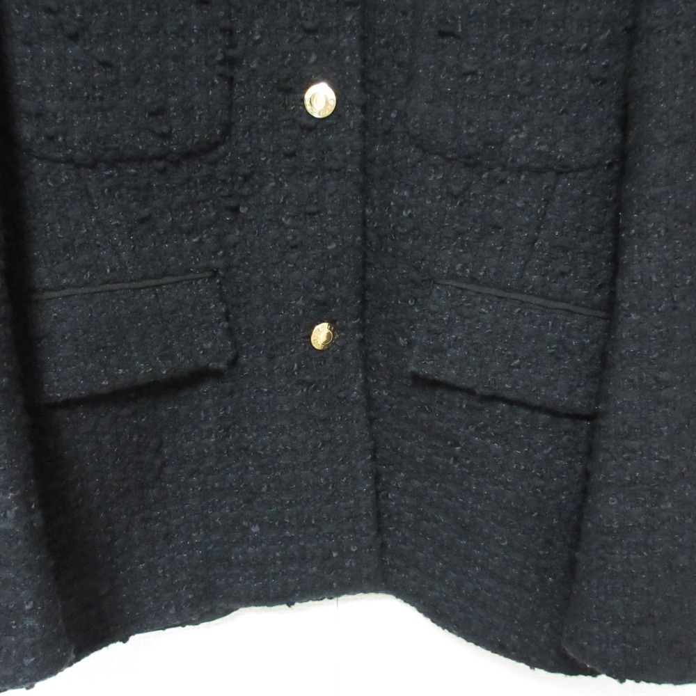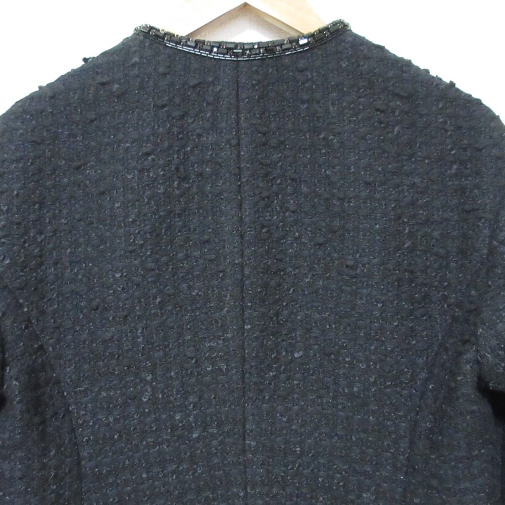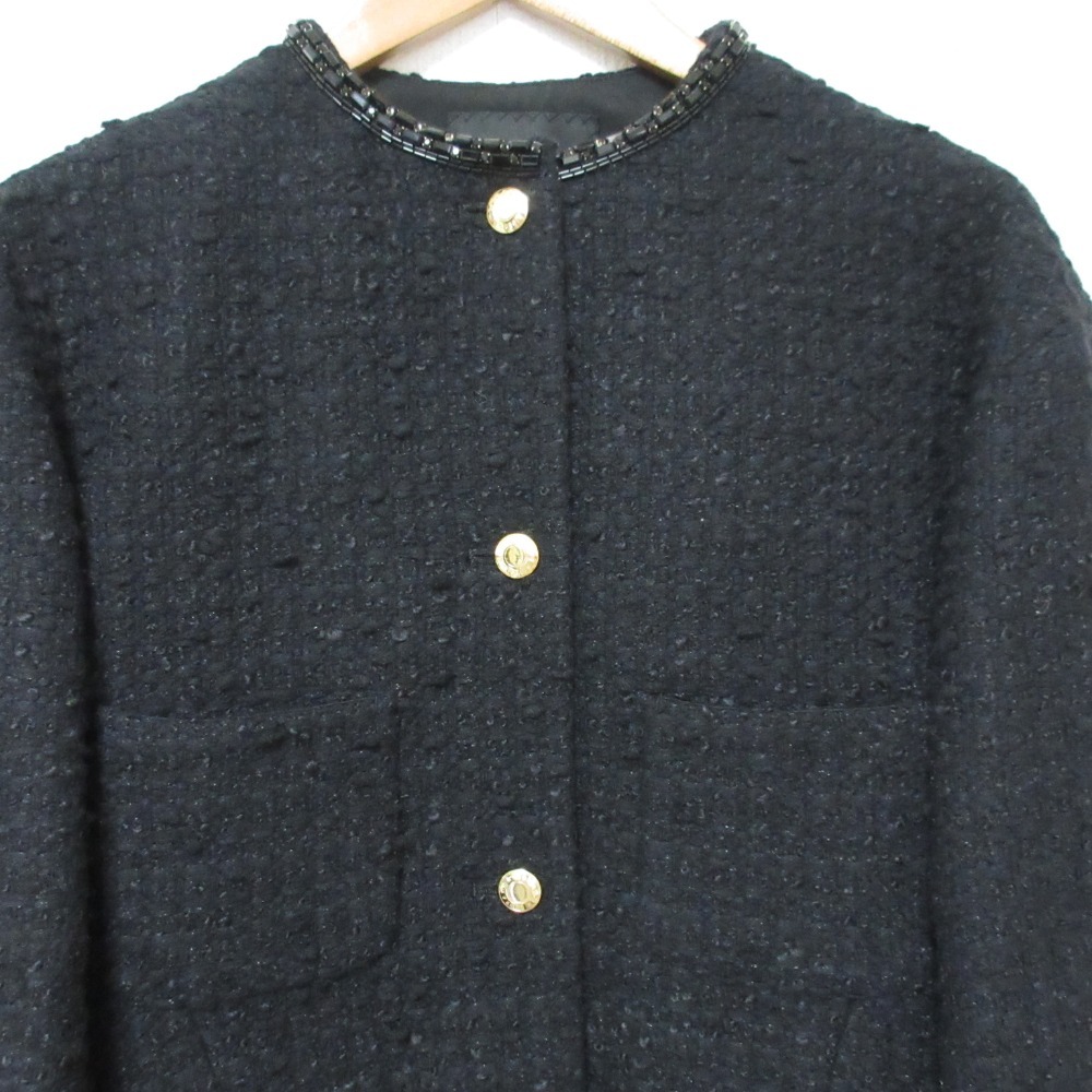 商品名:Drawer ドゥロワー 2023年モデル ウールコットンナイロン ツイード ビジューネック ジャケット サイズ36 ダークネイビー