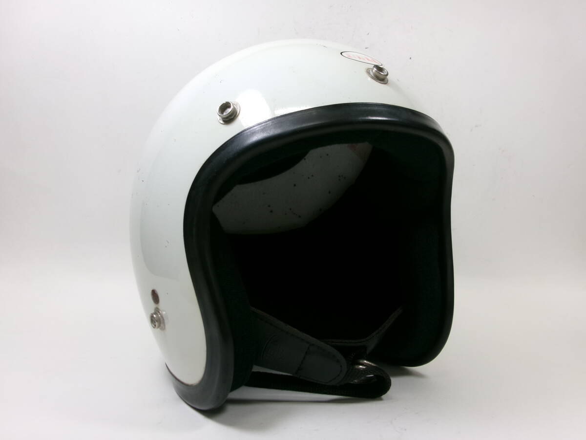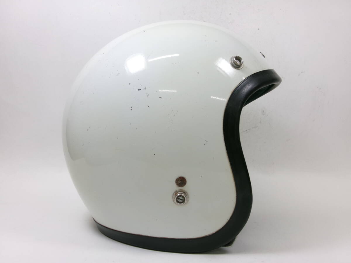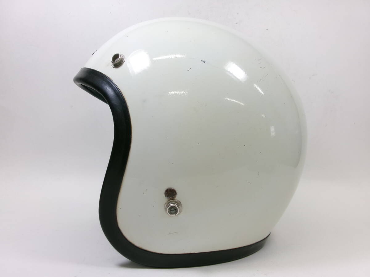 ■外装状態: 傷はありますが、全体的に艶もあり状態良好です。 ■内装状態: 新しい生地&スポンジでリペア済みなのですぐに使用可能です。 ■サイズ: 表記 7 1/8 被った感じMサイズ (約58~59cm)位です。 若干の誤差はご了承下さい。 ■コメント: 70年代 最初期 BELL R-T ジェットヘルメット です。 500TX(Mシェル)との比較画像もご参照ください。内装は加工済みなので目深く被れシルエットも抜群です。 オリペン、デカール類もオリジナルです。 お探しの方はこの機会に是非! ※装飾用です。公道での使用はお控えください。 |