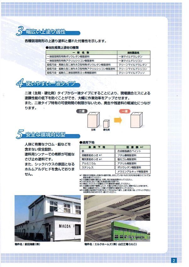 適用下地:鉄、ステンレス、アルミニウム、鉄部の各種旧塗膜