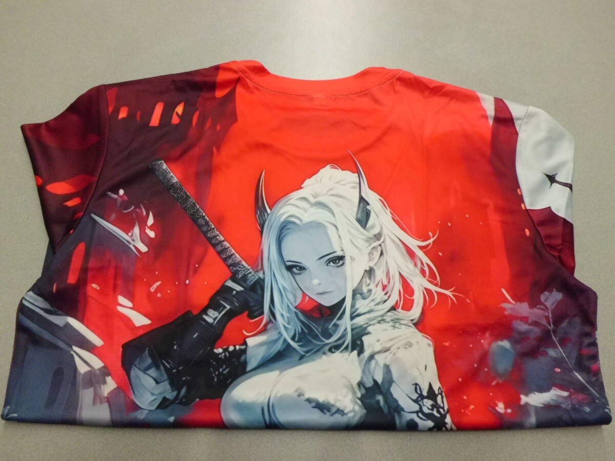 プリント アート イラスト アニメ ゲーム キャラクター  刀 メンズ レッド Tシャツ Mサイズ