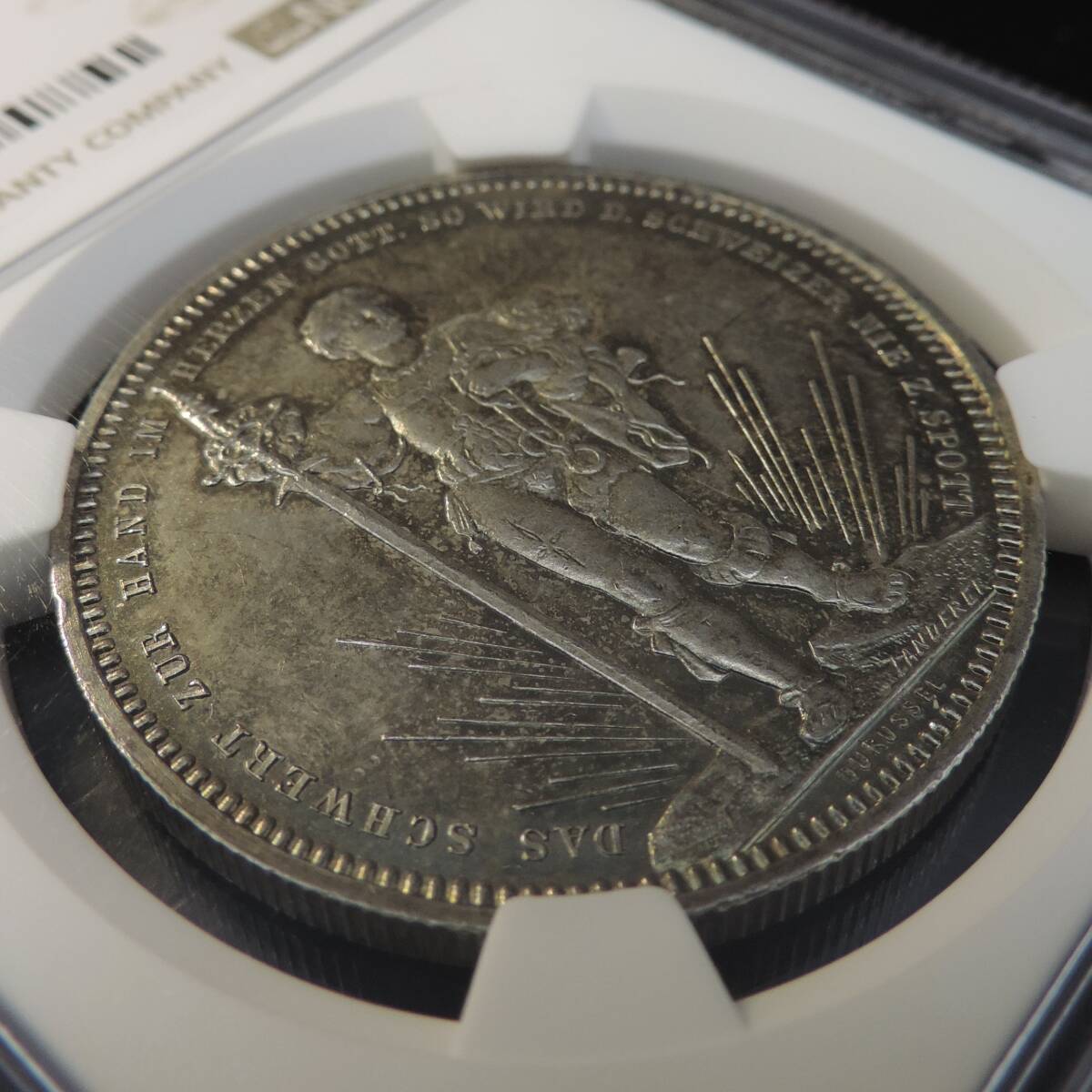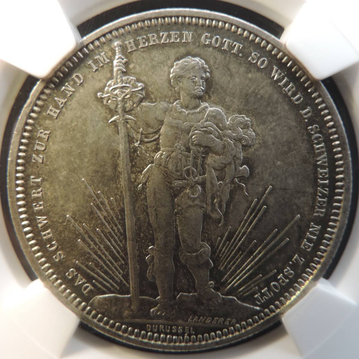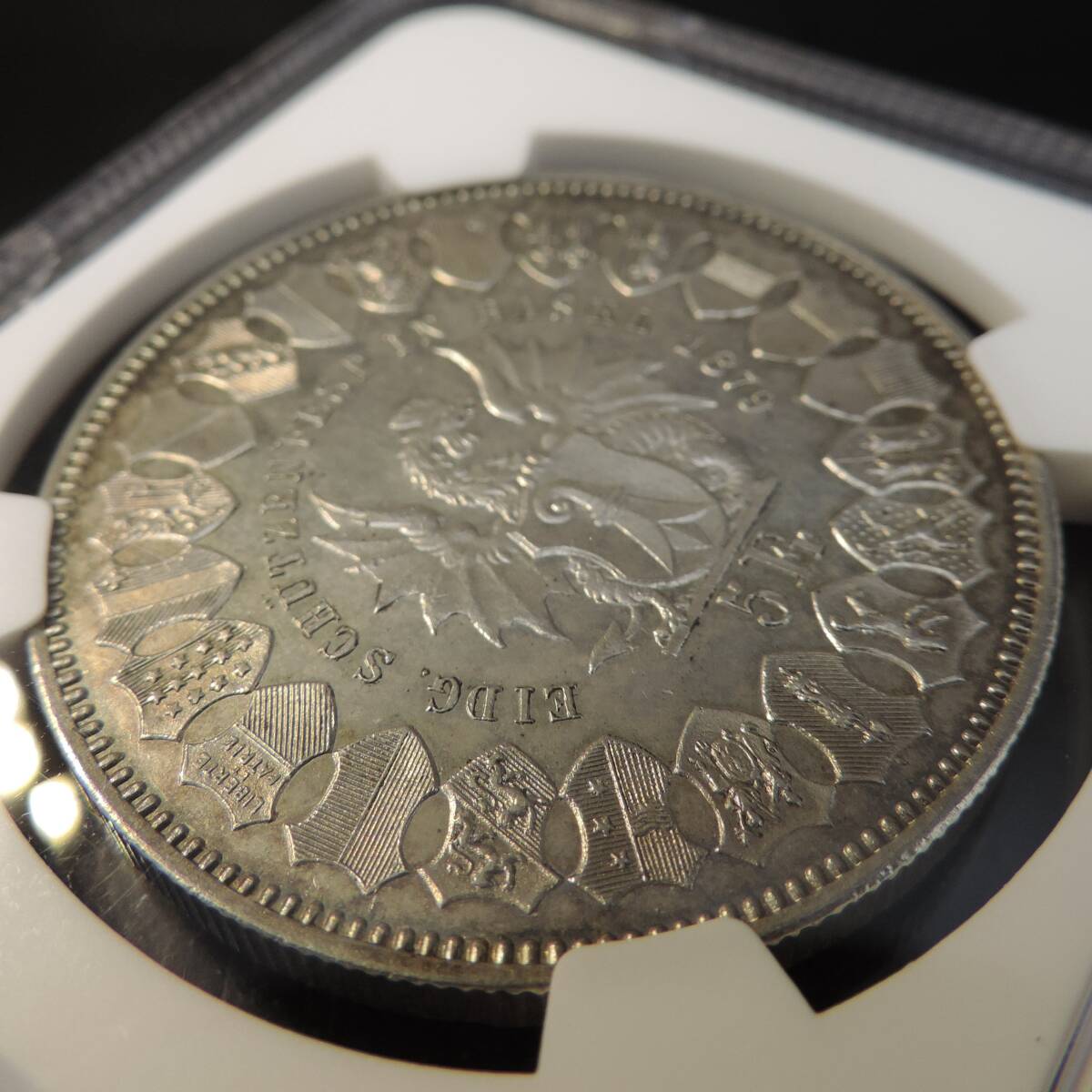 【高鑑定 MS63】1879年 スイス バーゼル 射撃祭 5フラン銀貨 NGC MS63 レインボートーン バジリスク アンティークコイン #234