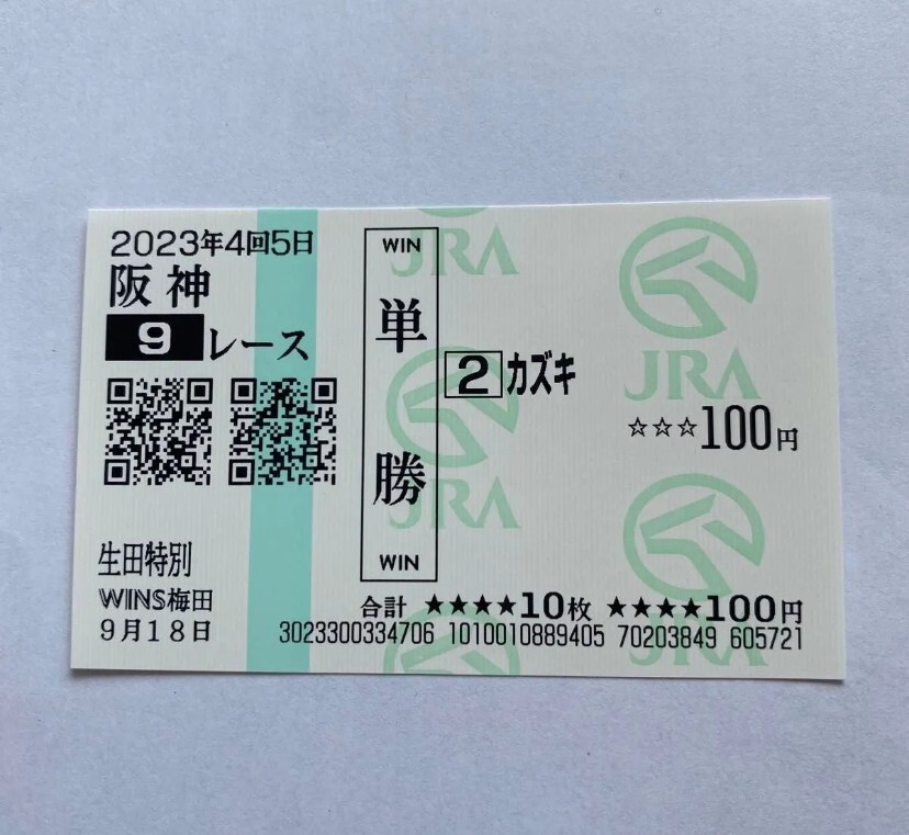 珍名馬券 和樹 カズキ 生田特別(1勝クラス) 場外単勝馬券