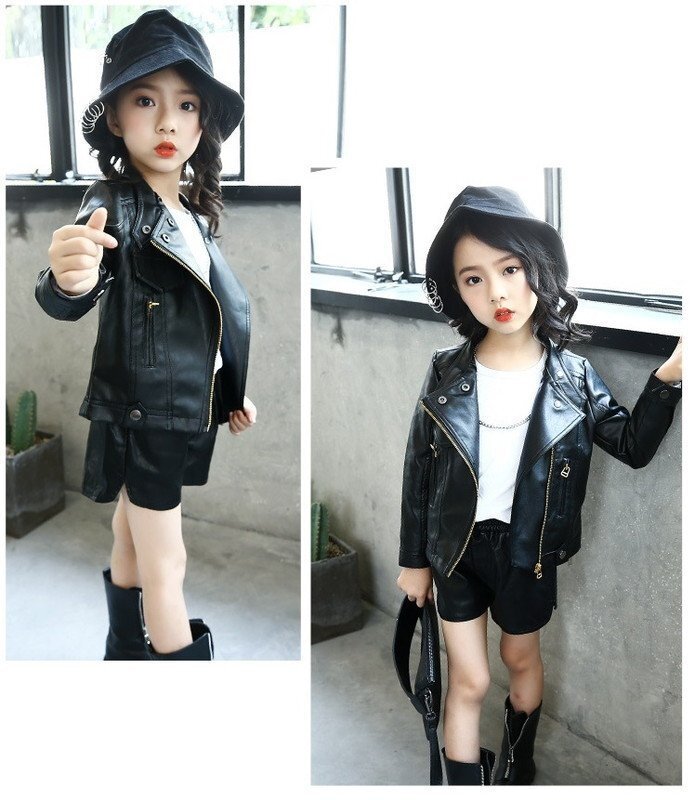 kids girl 2way ライダースジャケット 【ブラック 160cm】 韓国子供服 レザー ハード ライトアウター K-273