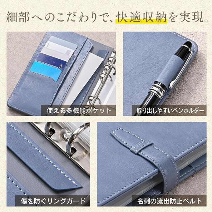 Amazon | KOKOROGU 【ビジネスの品格は手帳型で整える】 名刺ホルダー 大容量 革 名刺ファイル 差替式 シンプル 150枚 名刺入れ (ネイビー)