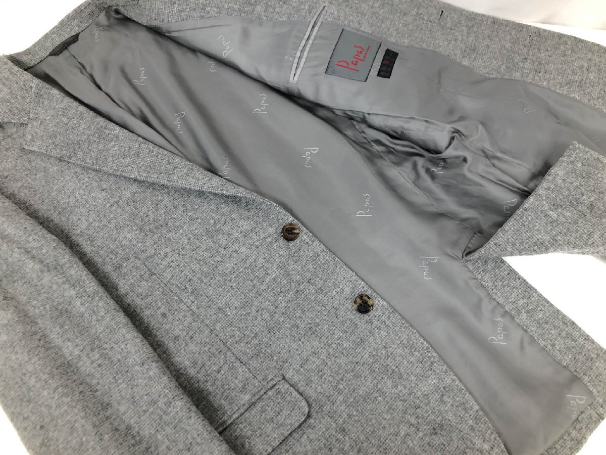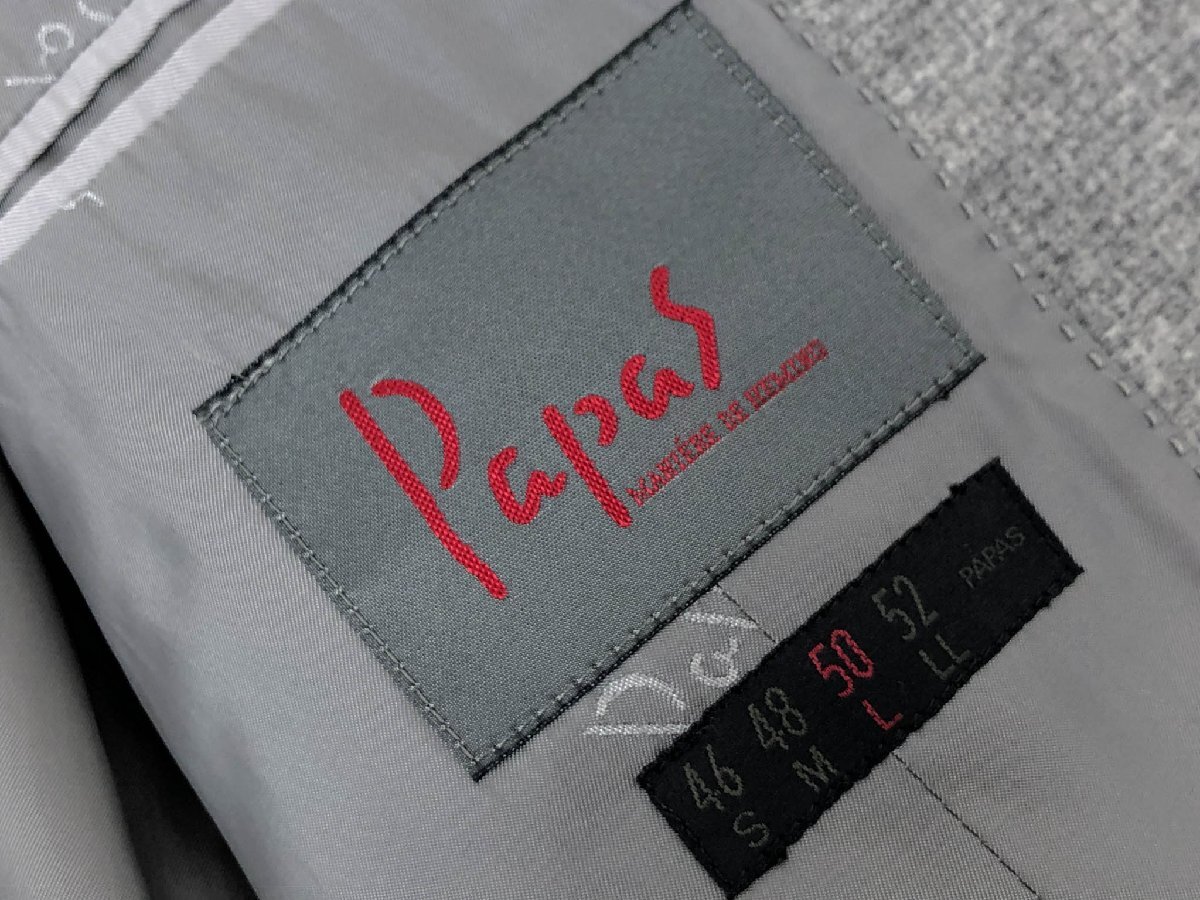 極美品【パパス PAPAS】D0494FJ 804 シングル3ボタン段返り 織柄 起毛生地 アンコンジャケット (メンズ) size50 グレー系 ◇17MJ0578◇