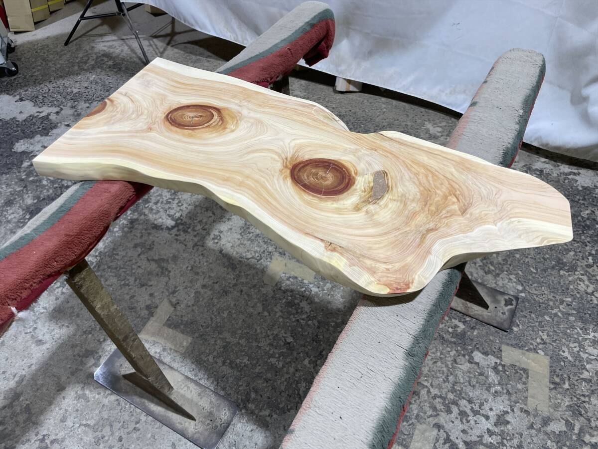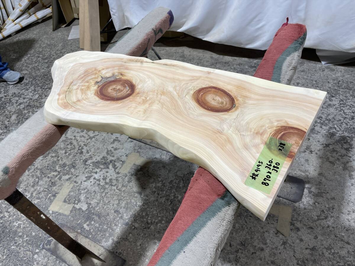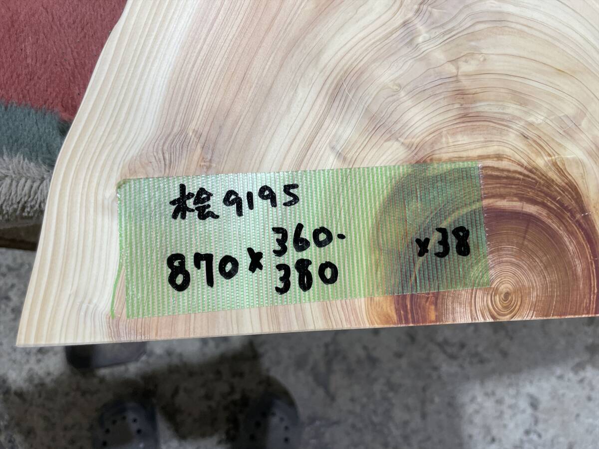 桧9195 一枚板無垢 乾燥材 870x360x38mm ヒノキ 檜 カウンター センターテーブル ダイニングテーブル
