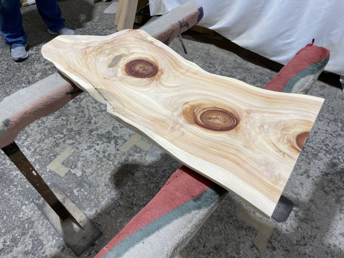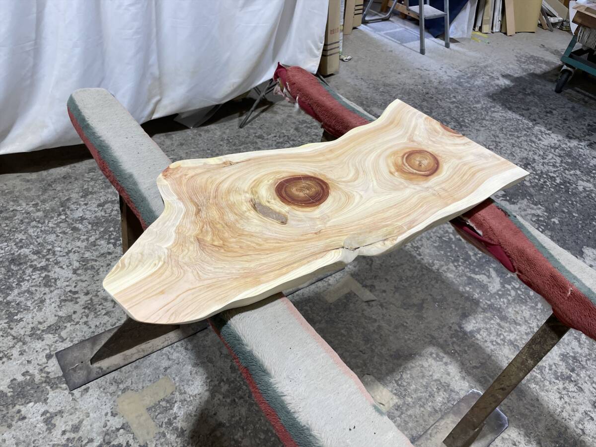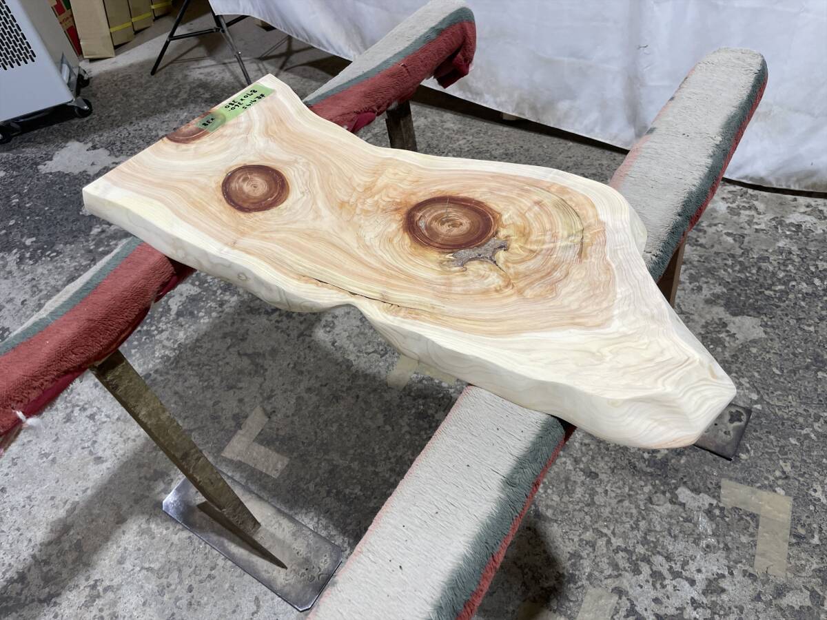 桧9195 一枚板無垢 乾燥材 870x360x38mm ヒノキ 檜 カウンター センターテーブル ダイニングテーブル